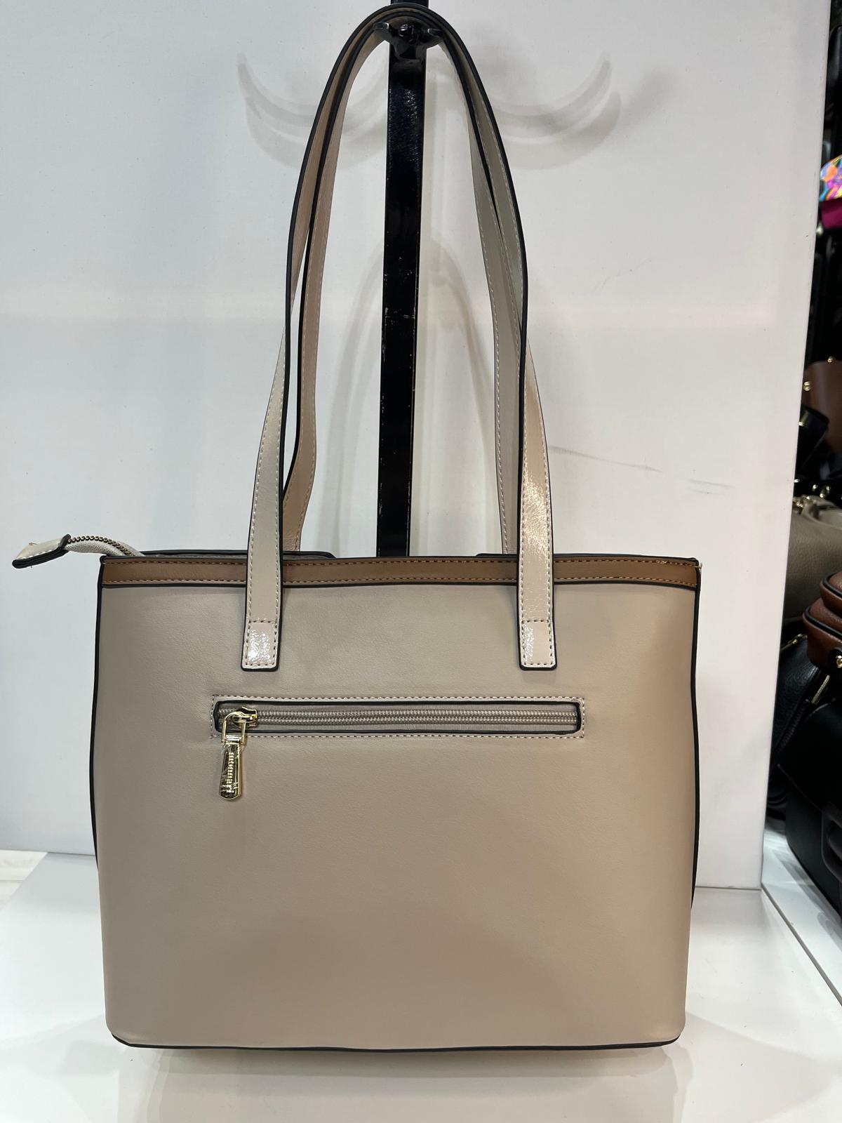 Torba na rączkach, jednokomorowa z jasną, logowaną podszewką, kieszonkami oraz przegródką.