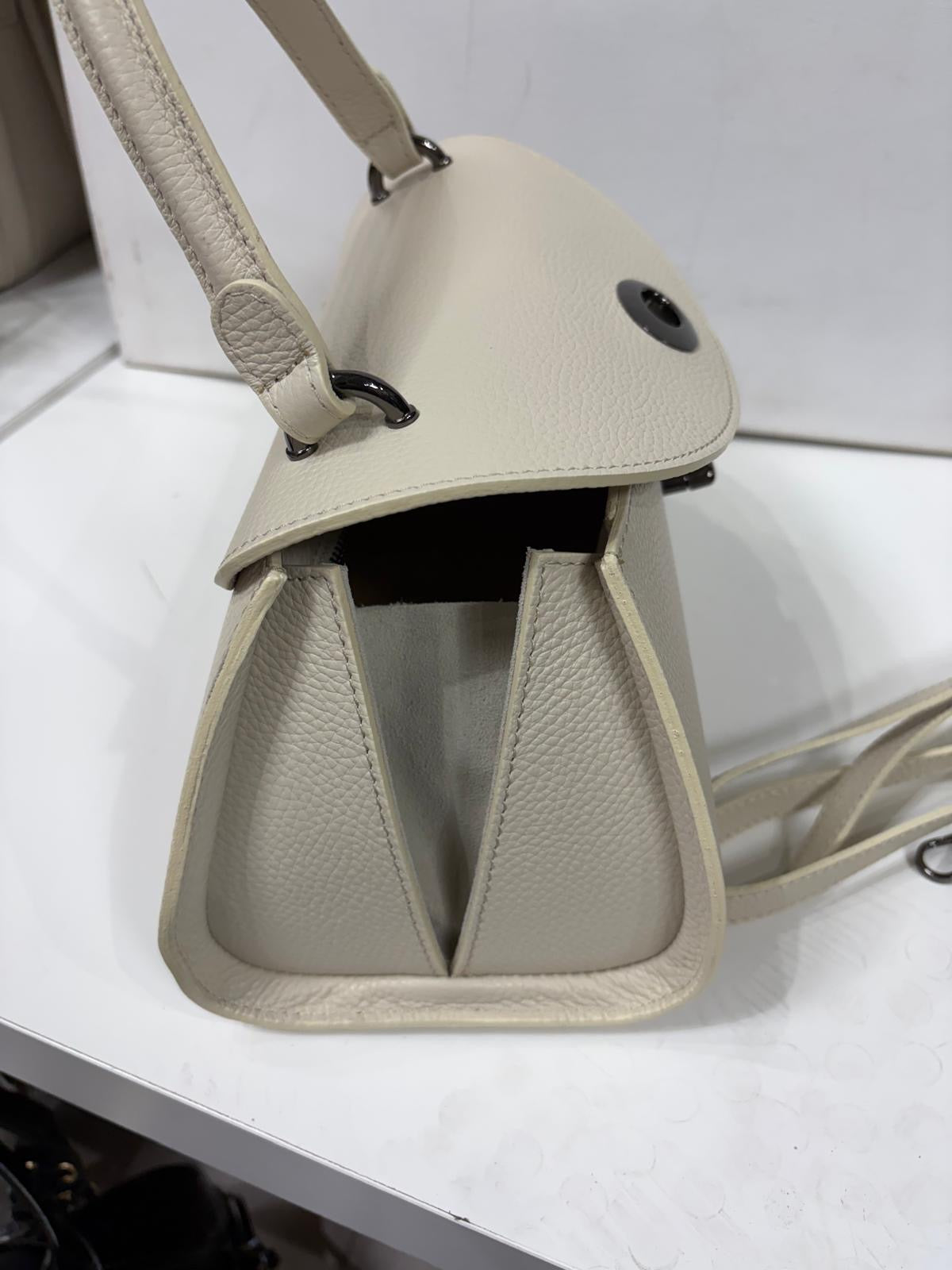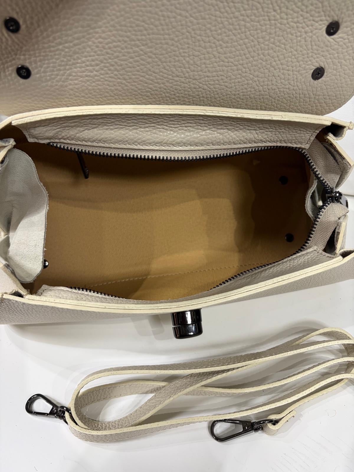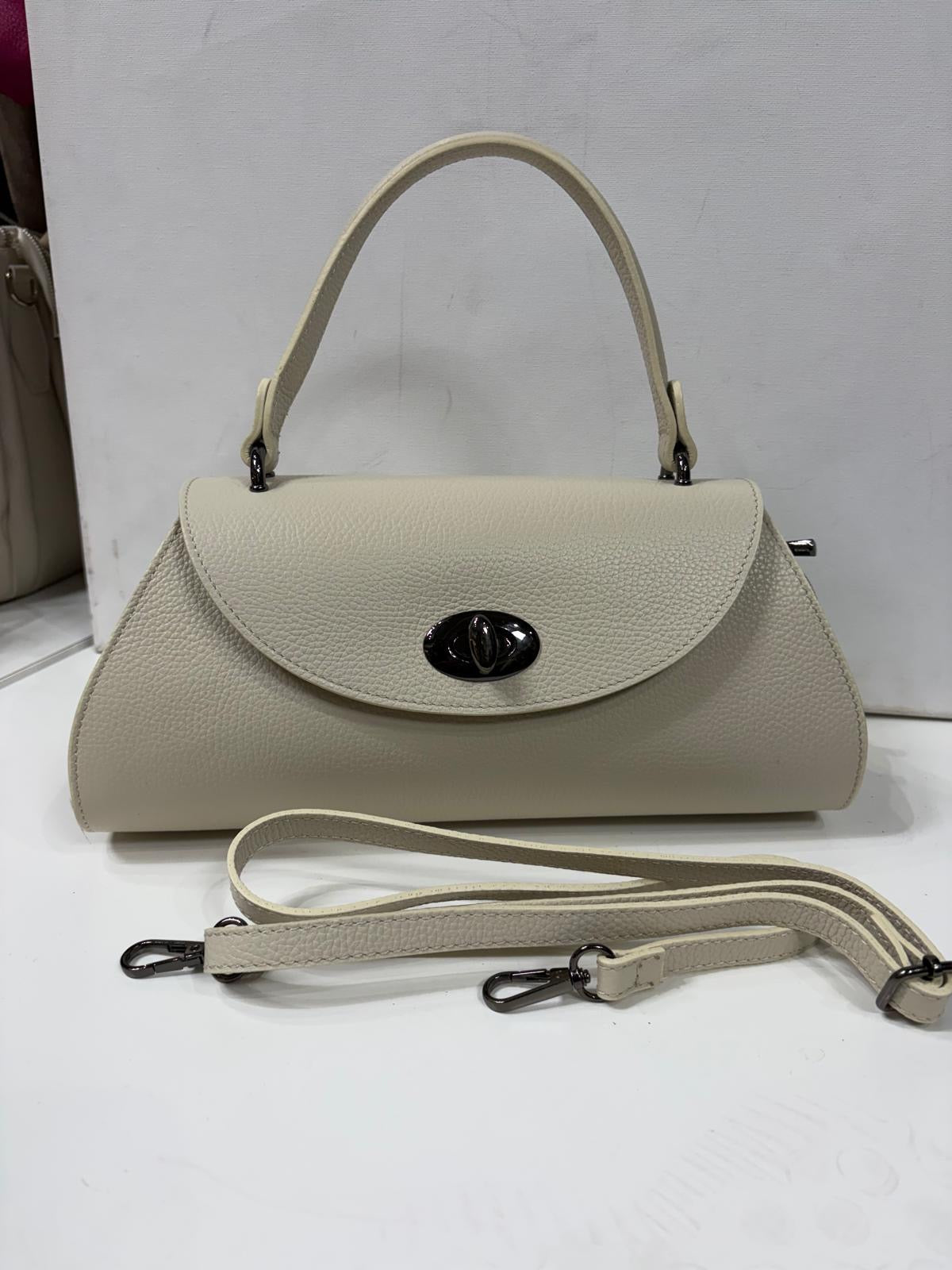 NOWOŚĆ Torebka kuferek Vezze skóra naturalna jasny beż