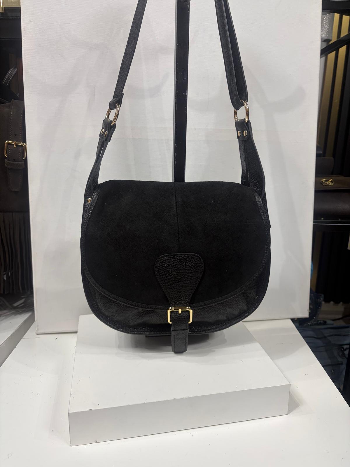 NOWOŚĆ Torebka Vezze skóra naturalna połączona z zamszem naturalnym czarna