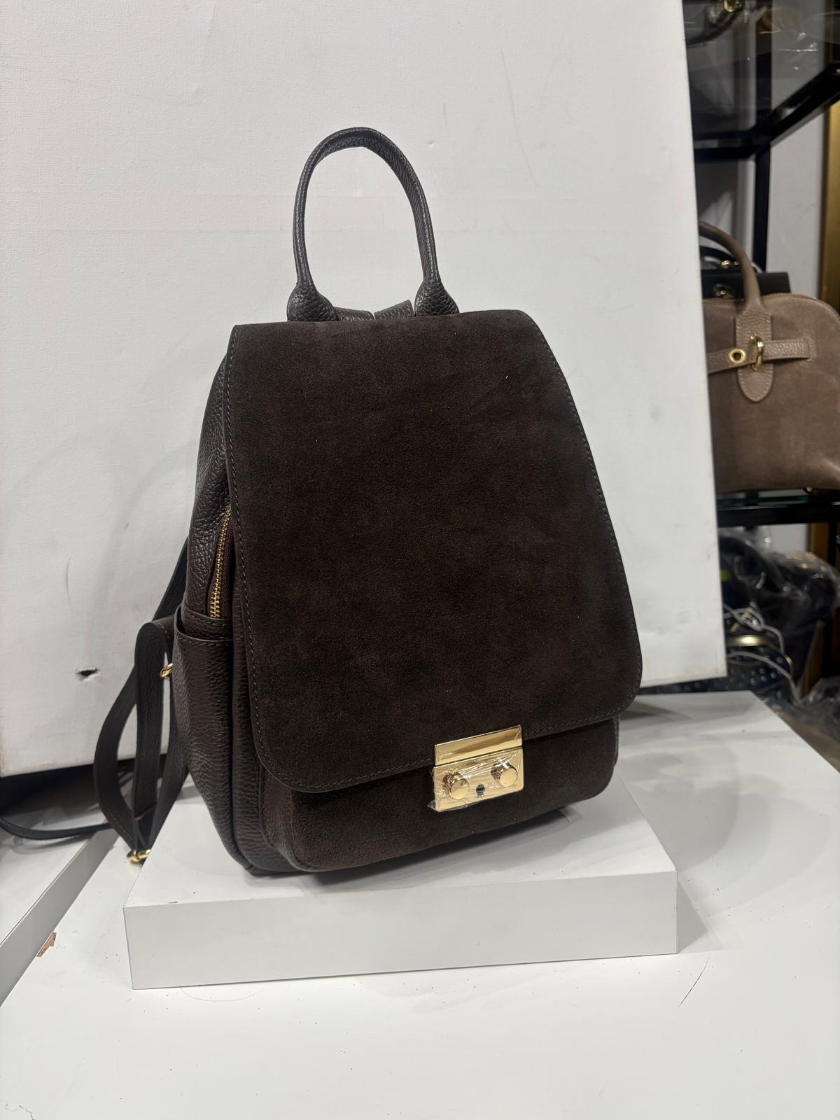 Nowość Włoska plecak skóra z zamsze VEZZE czekolada