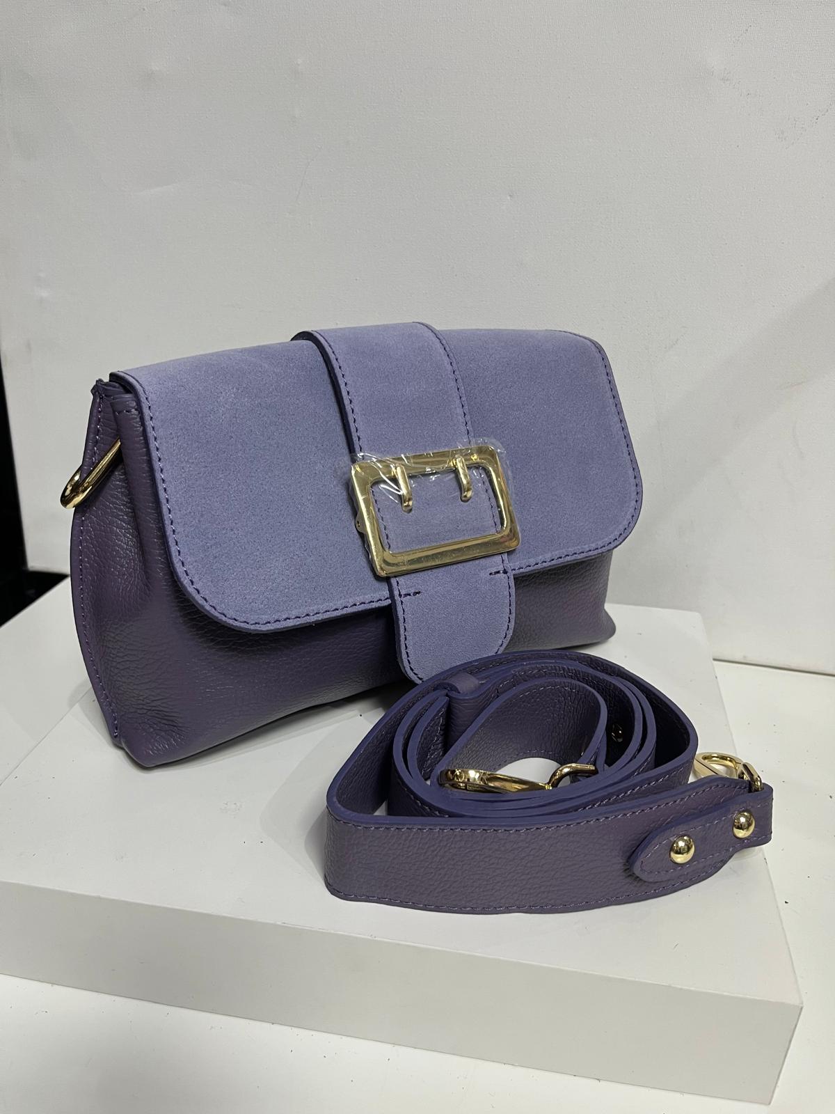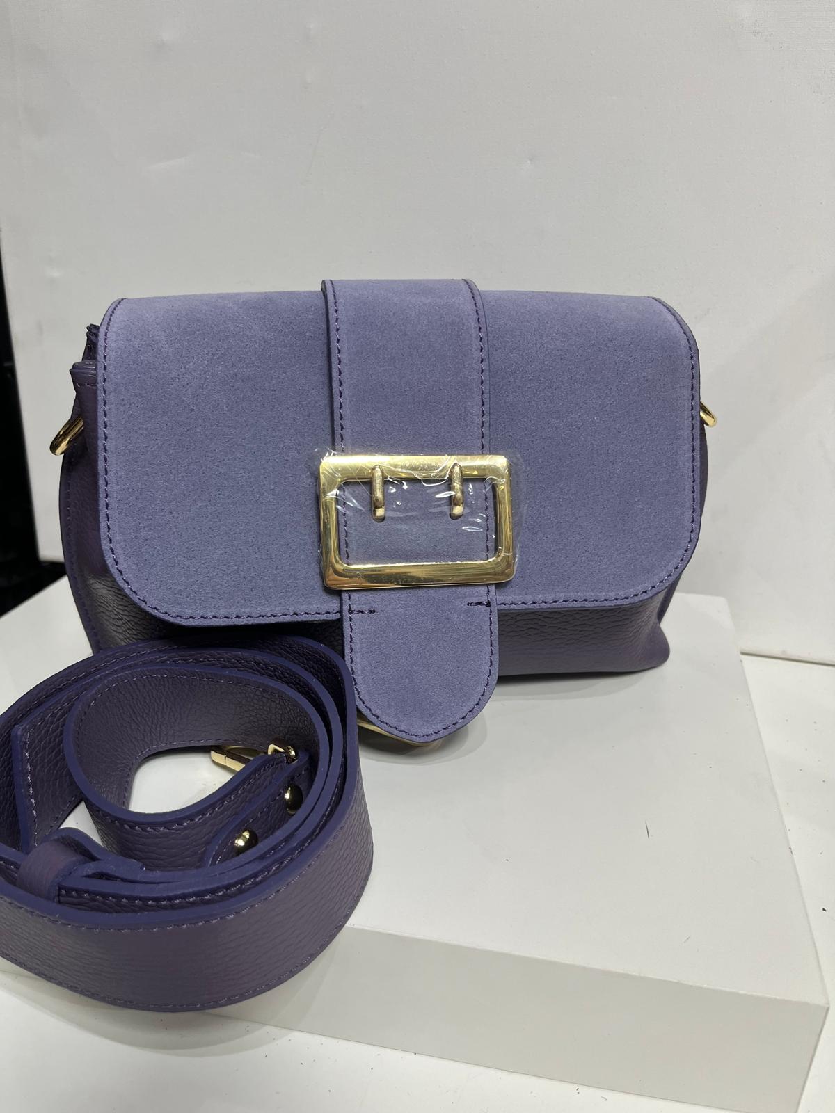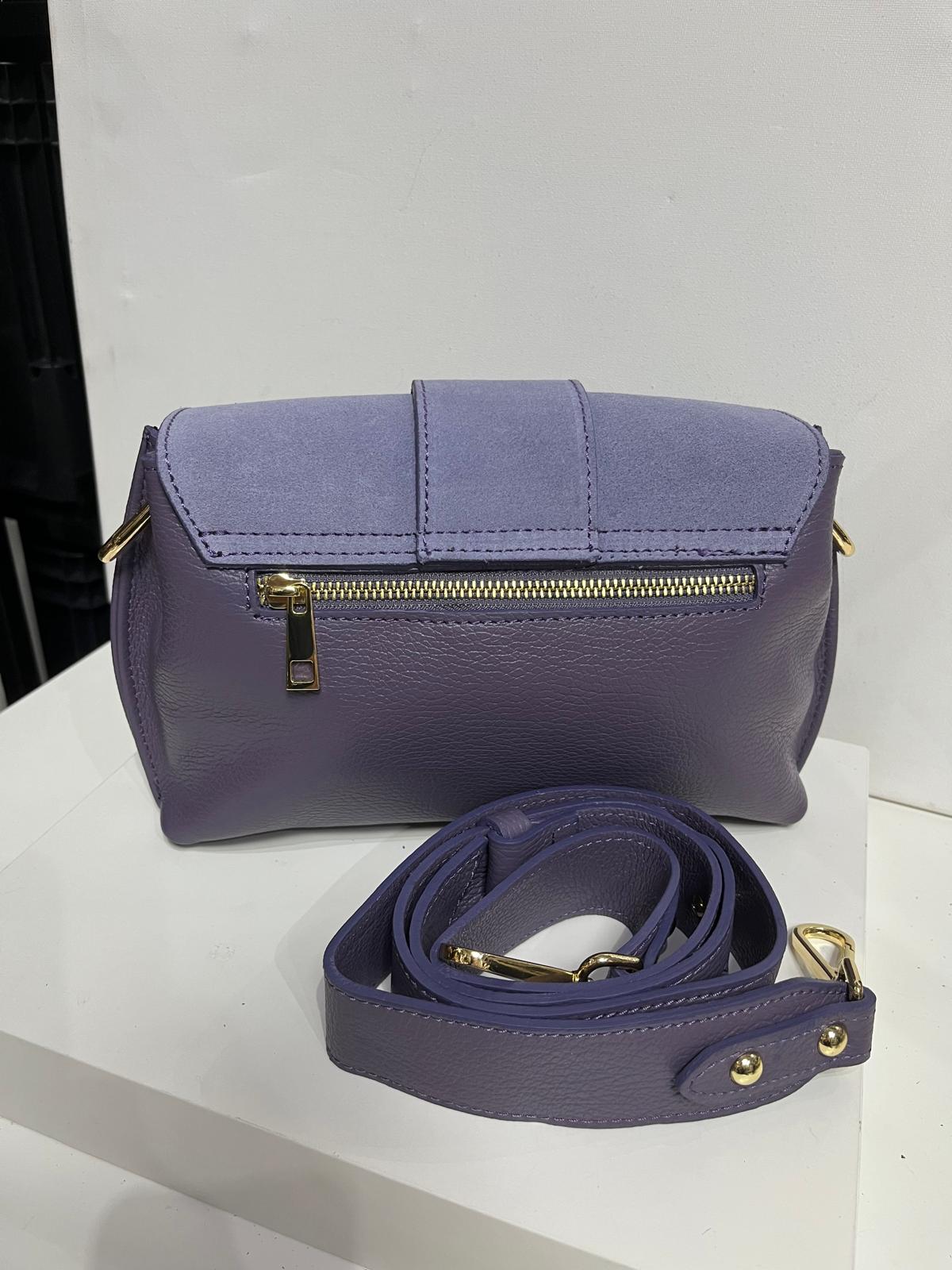 NOWOŚĆ Fioletowa listonoszka ze złotą klamrą VERA PELLE