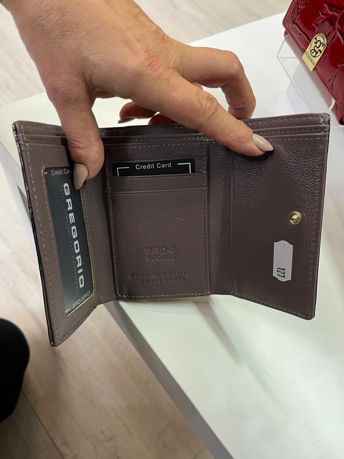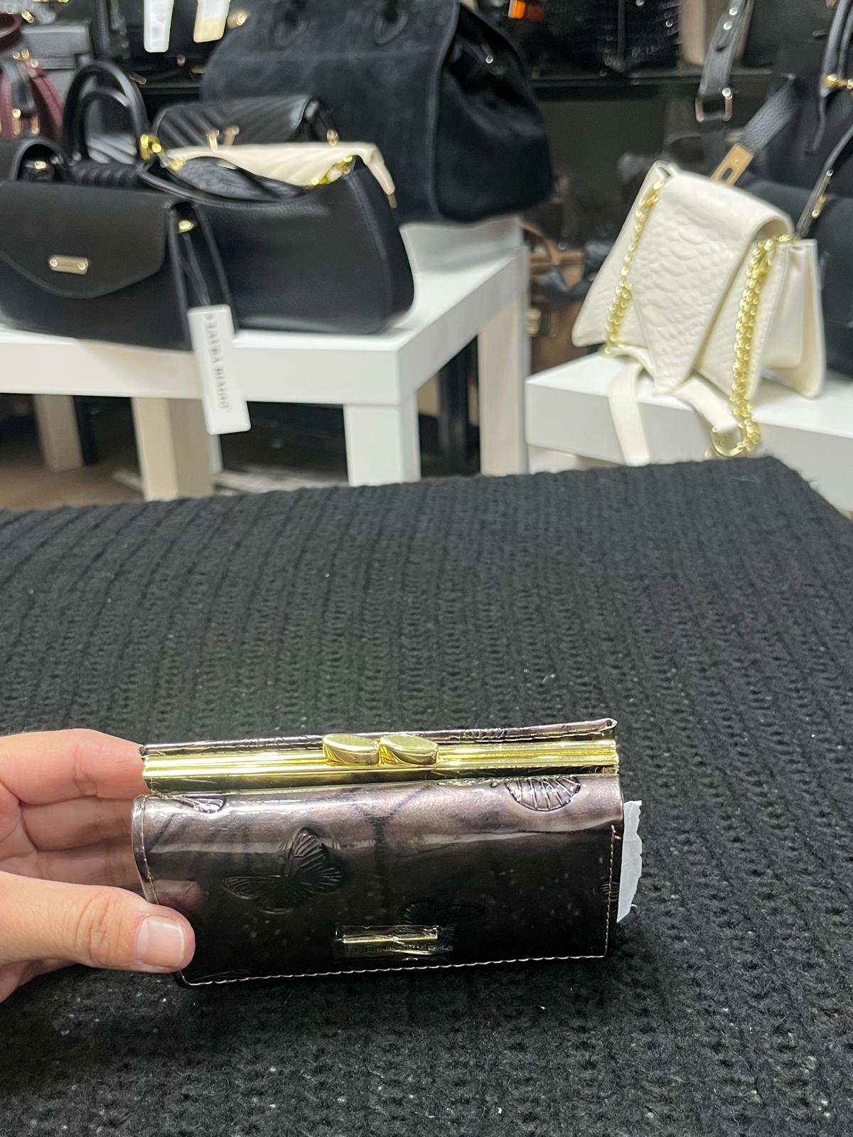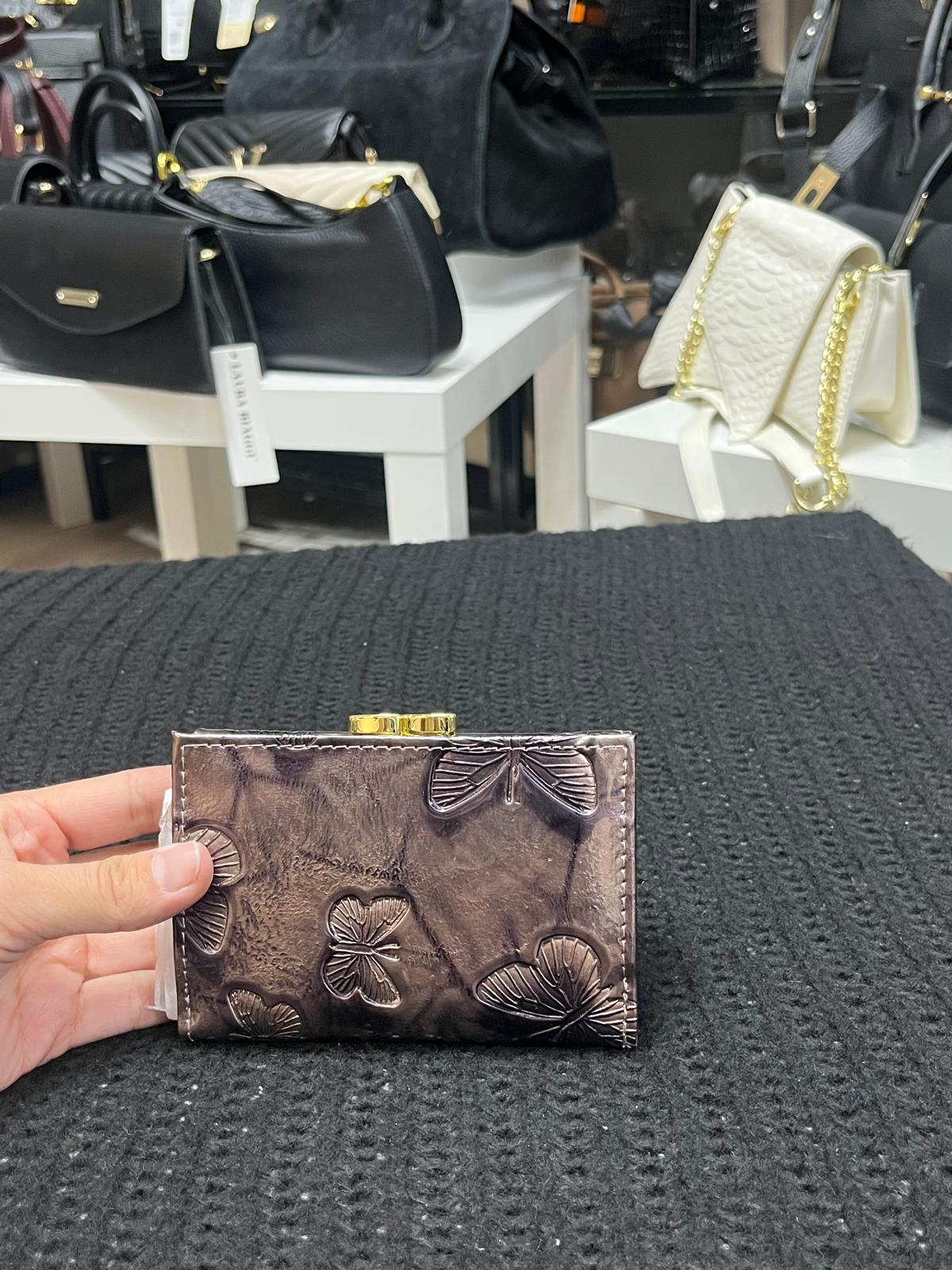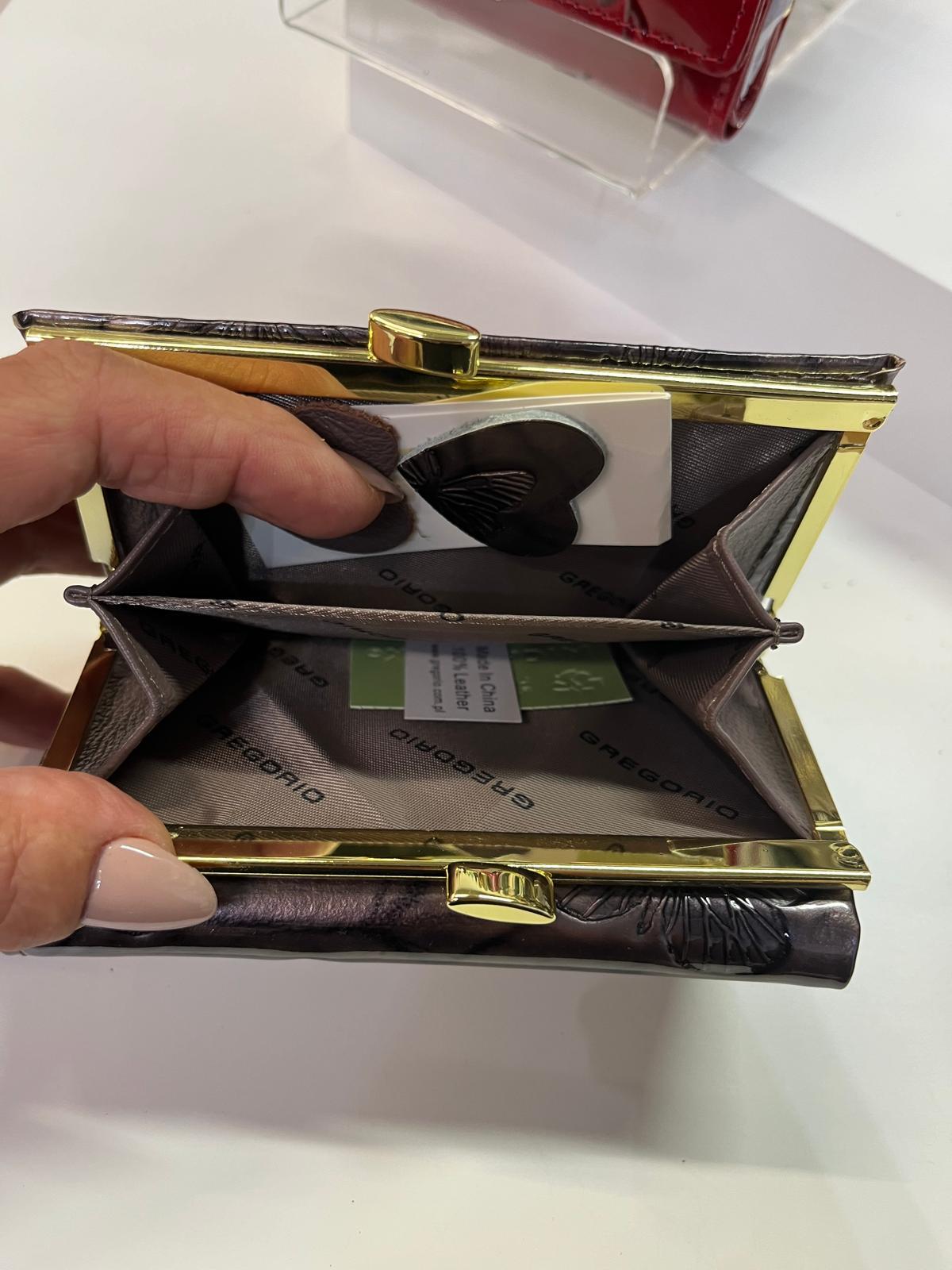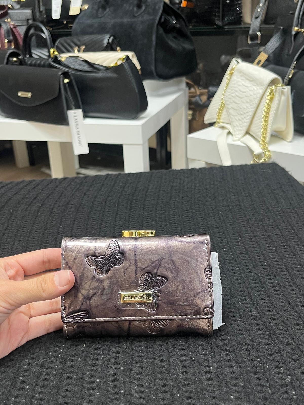 LAKIEROWANY SKÓRZANY DAMSKI PORTFEL GREGORIO motyl
