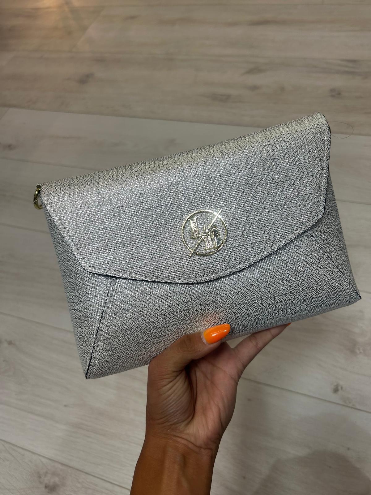 LAURA BIAGGI Elegancka Wizytowa KOPERTÓWKA Torebka na Łańcuszku SREBRNA