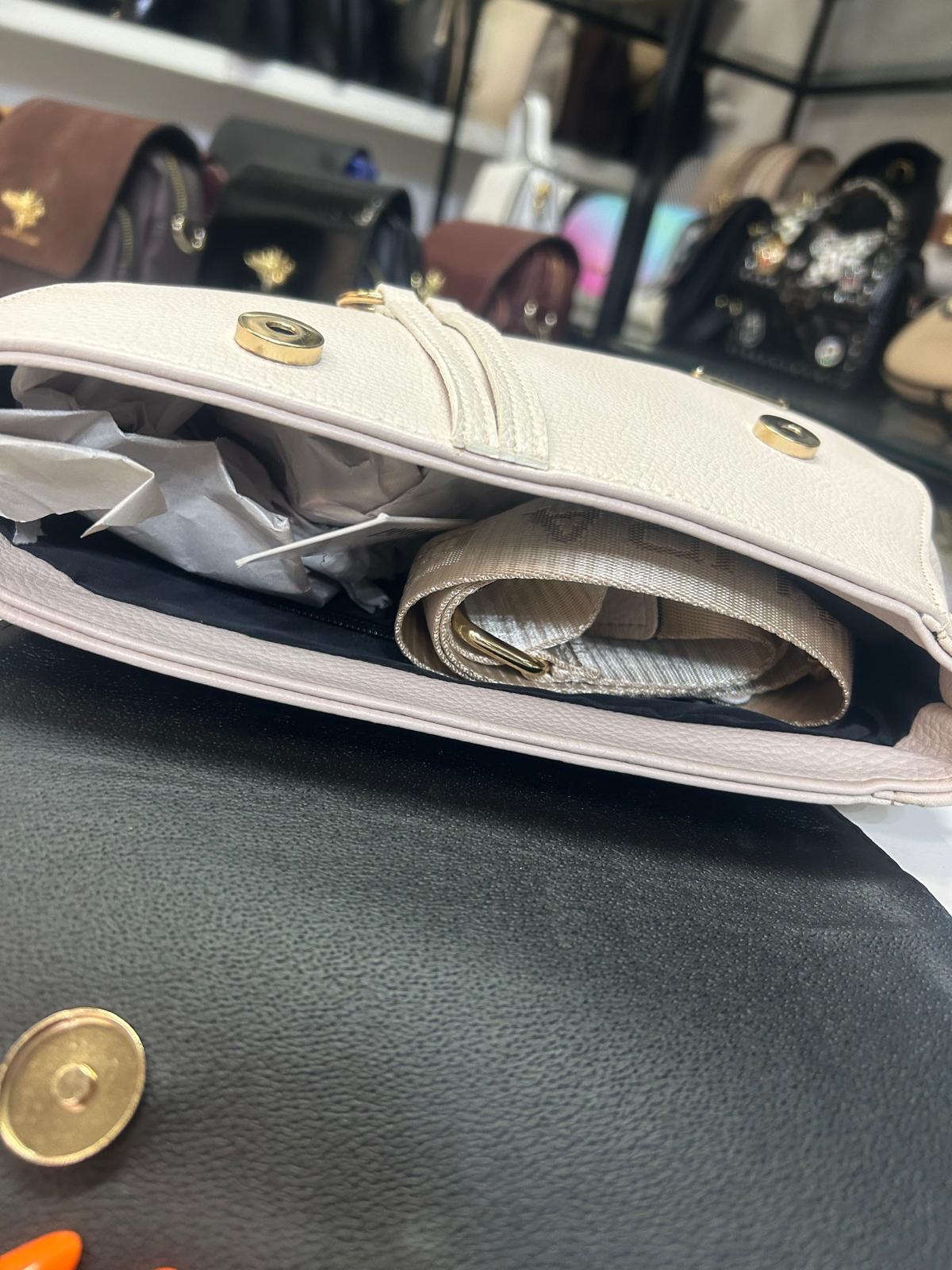 Torebka Laura Biaggi listonoszka podkowa skóra ekologiczna beżowa