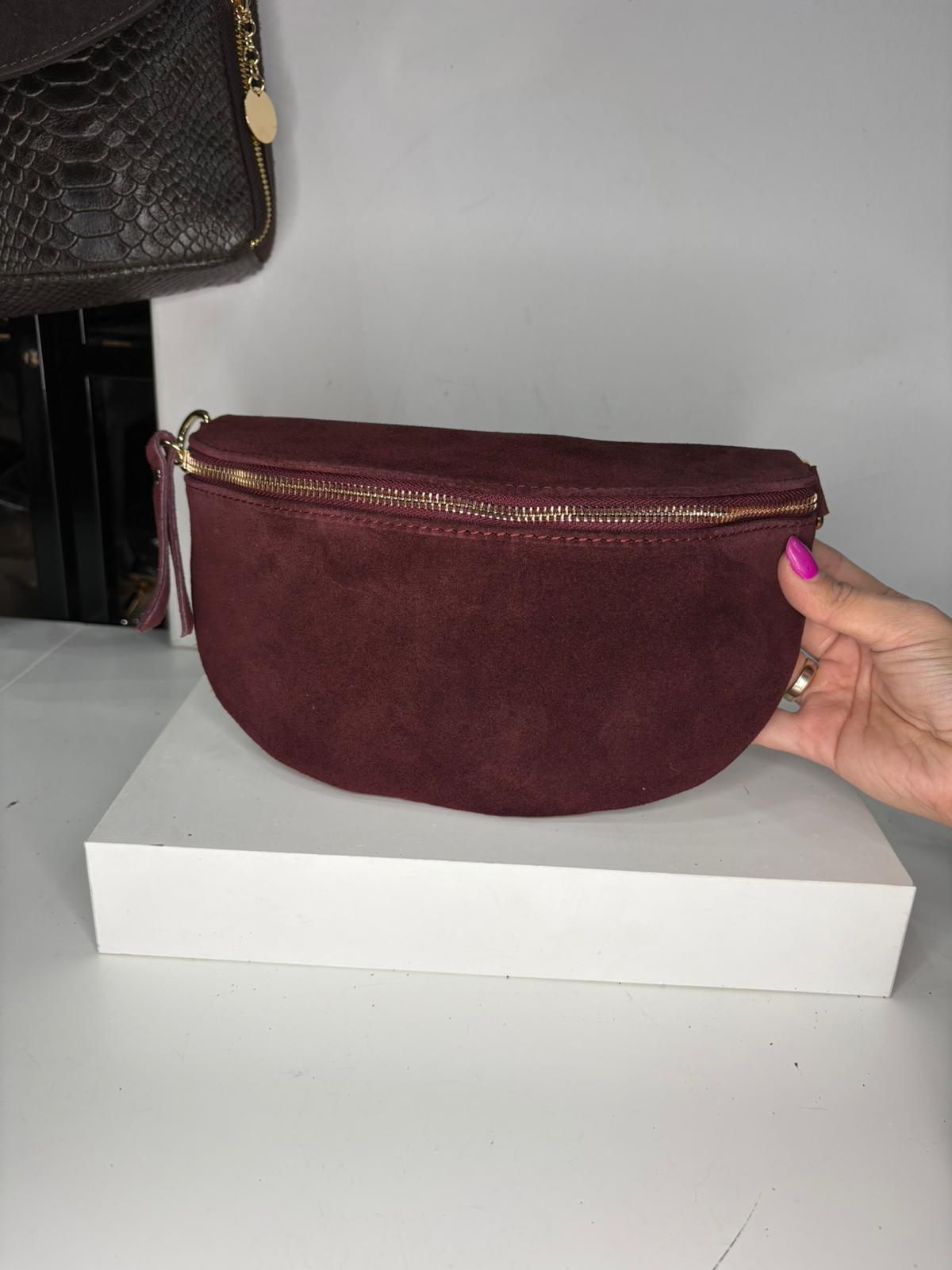 NOWOŚĆ Nerka zamsz naturalny bordo włoska