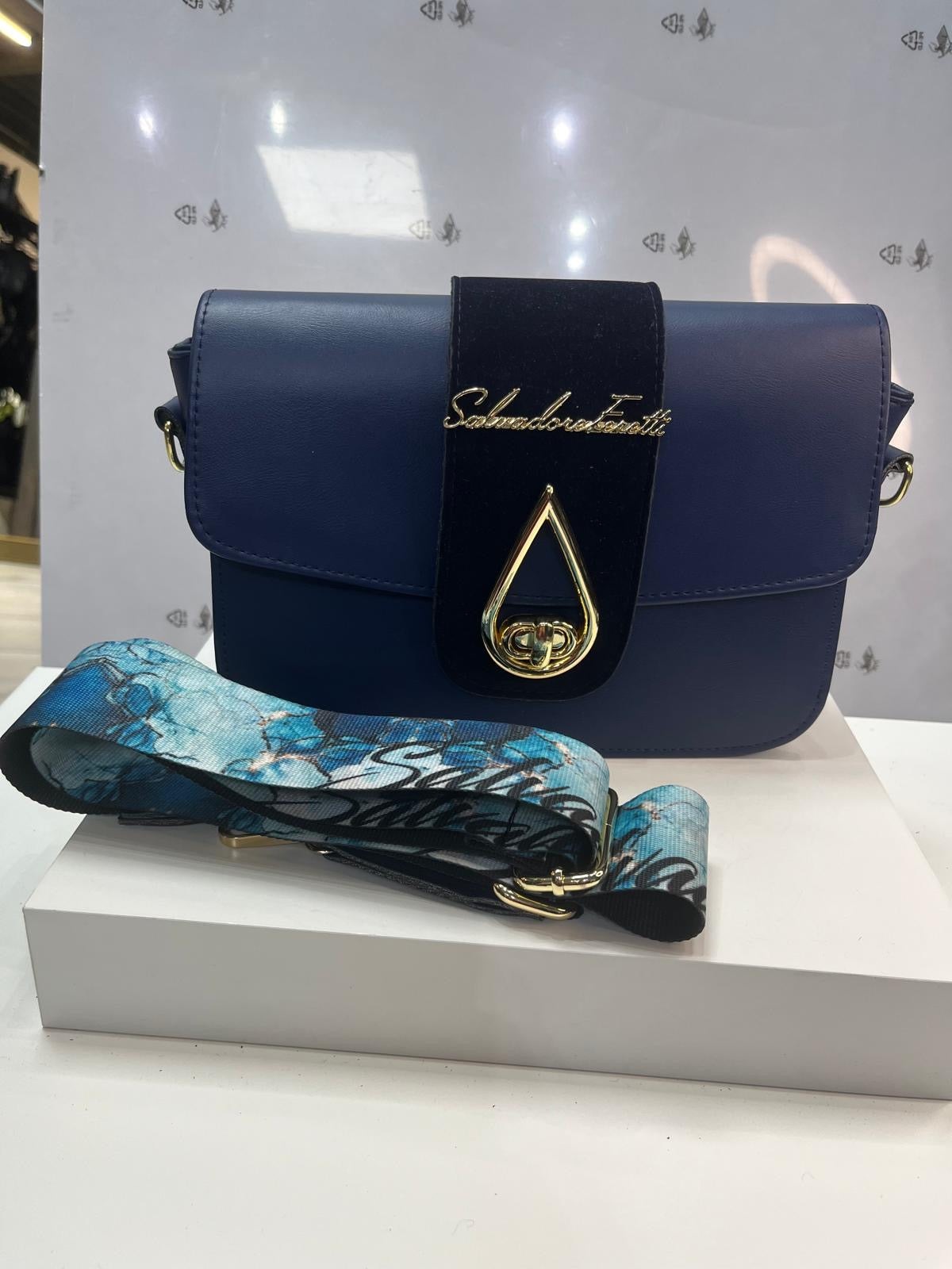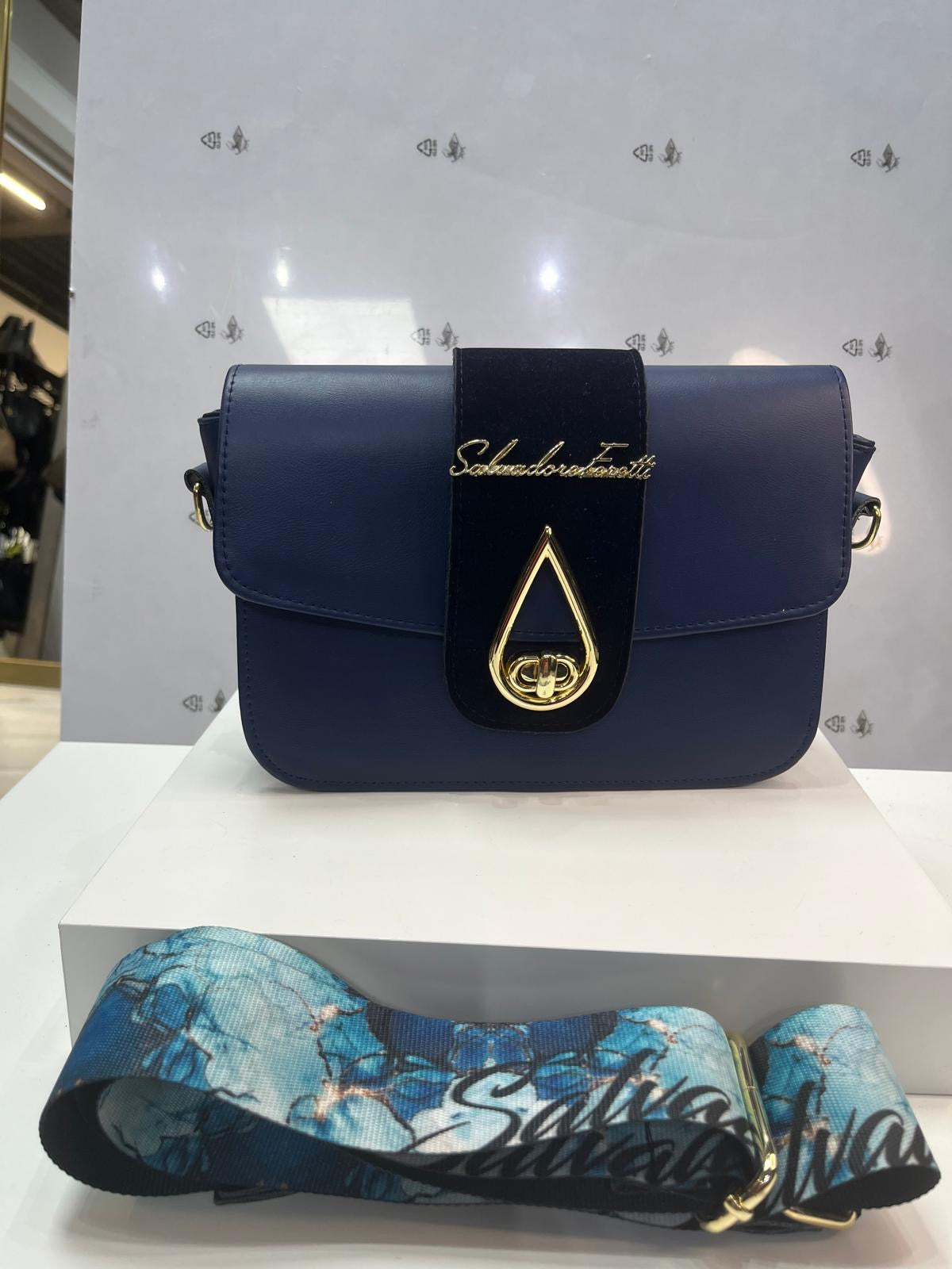 WYPRZEDAŻ SALVADORE FERETTI elegancka torebka Listonoszka SKÓRA ekologiczna Granatowa