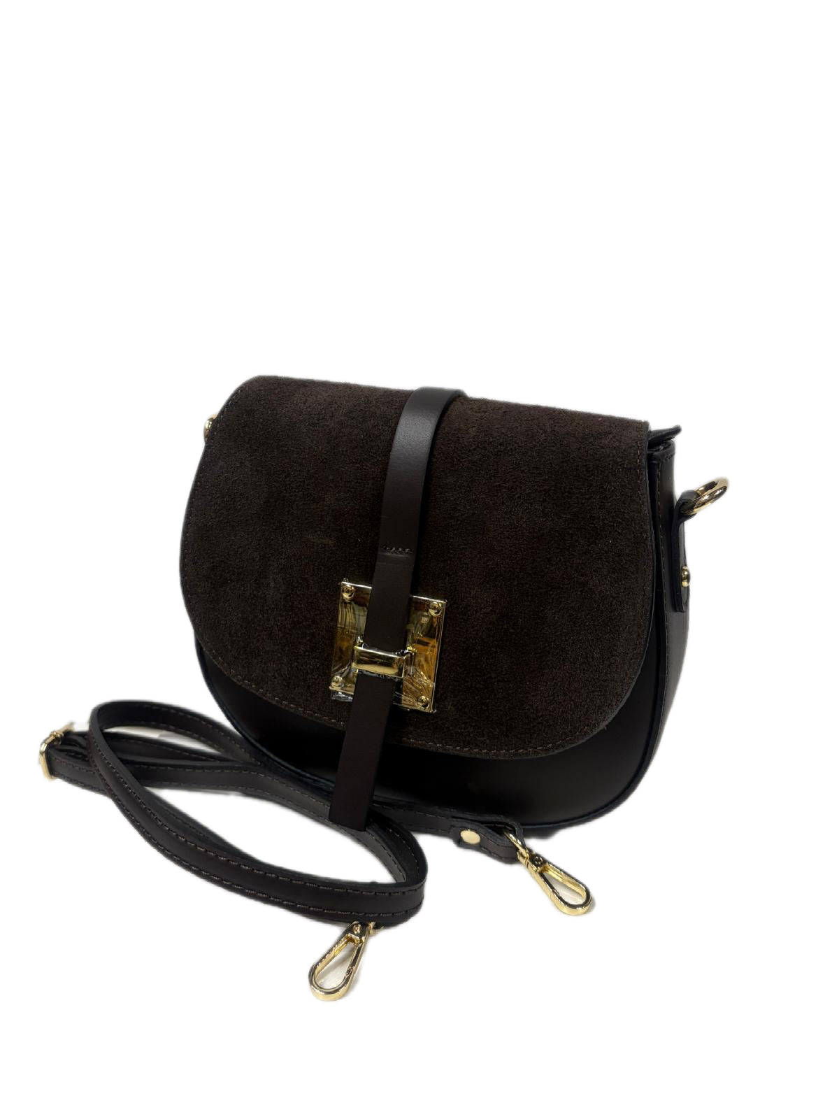 NOWOŚĆ Torebka zamsz naturalny + skóra naturalna czekolada włoska