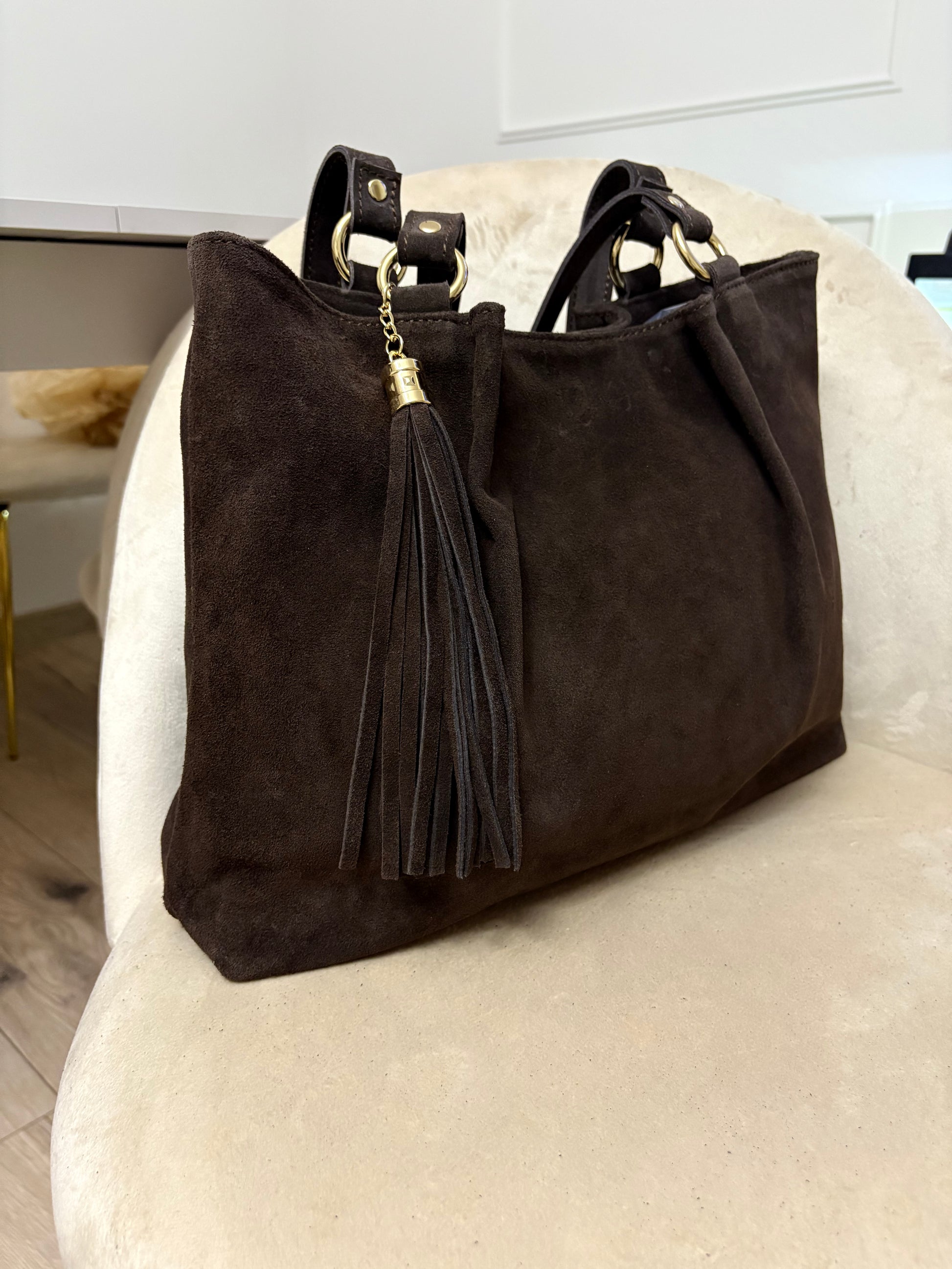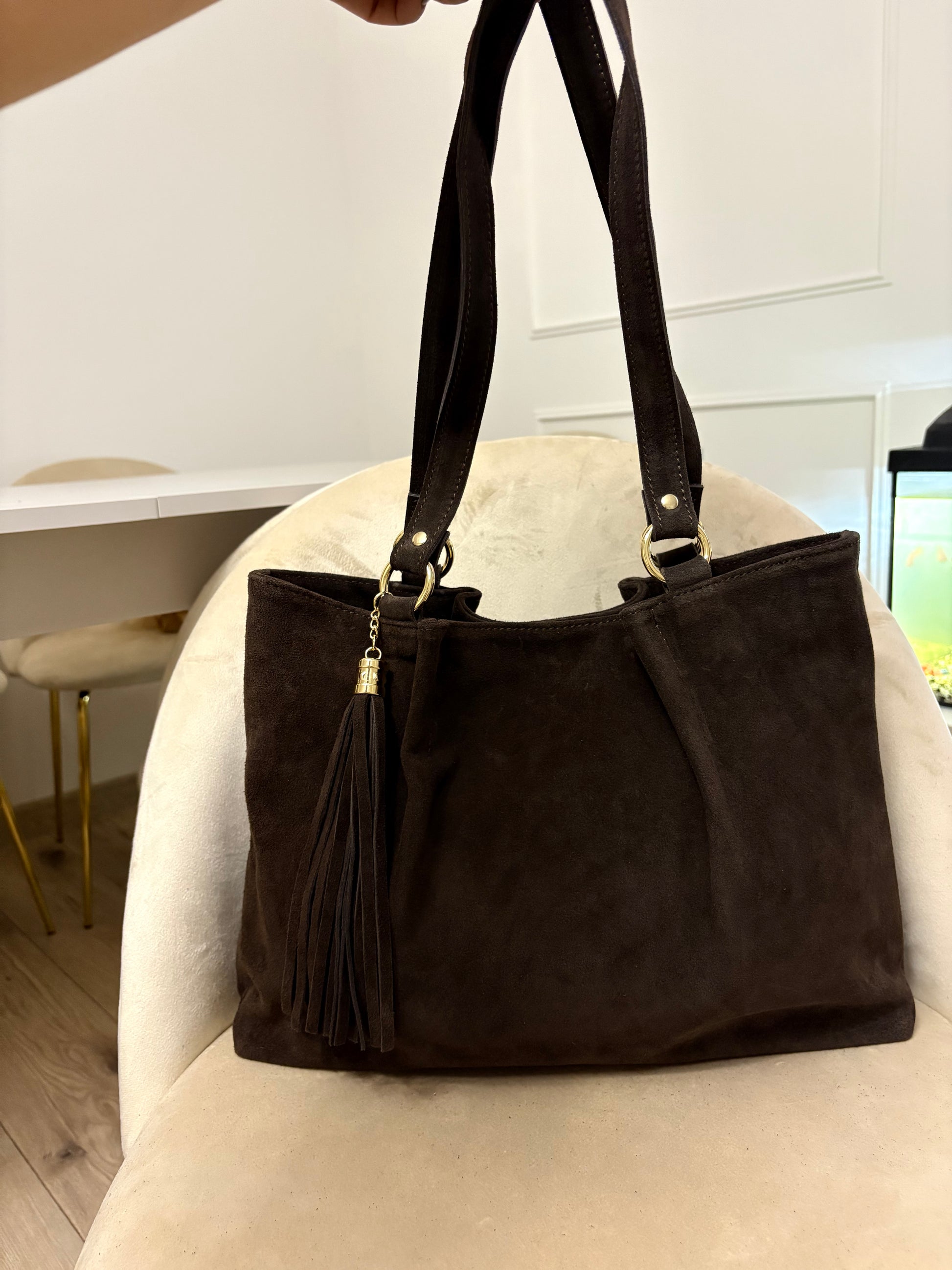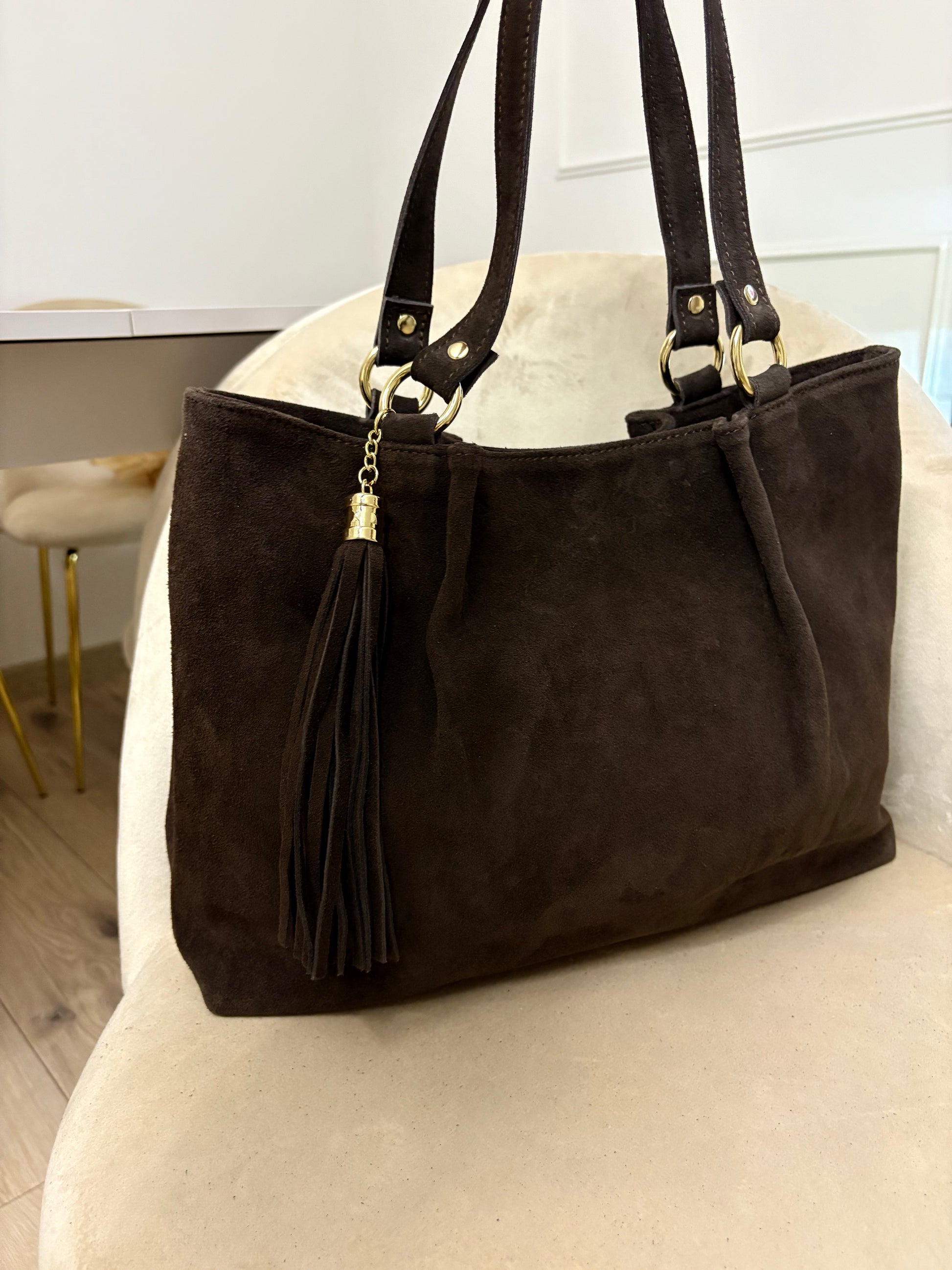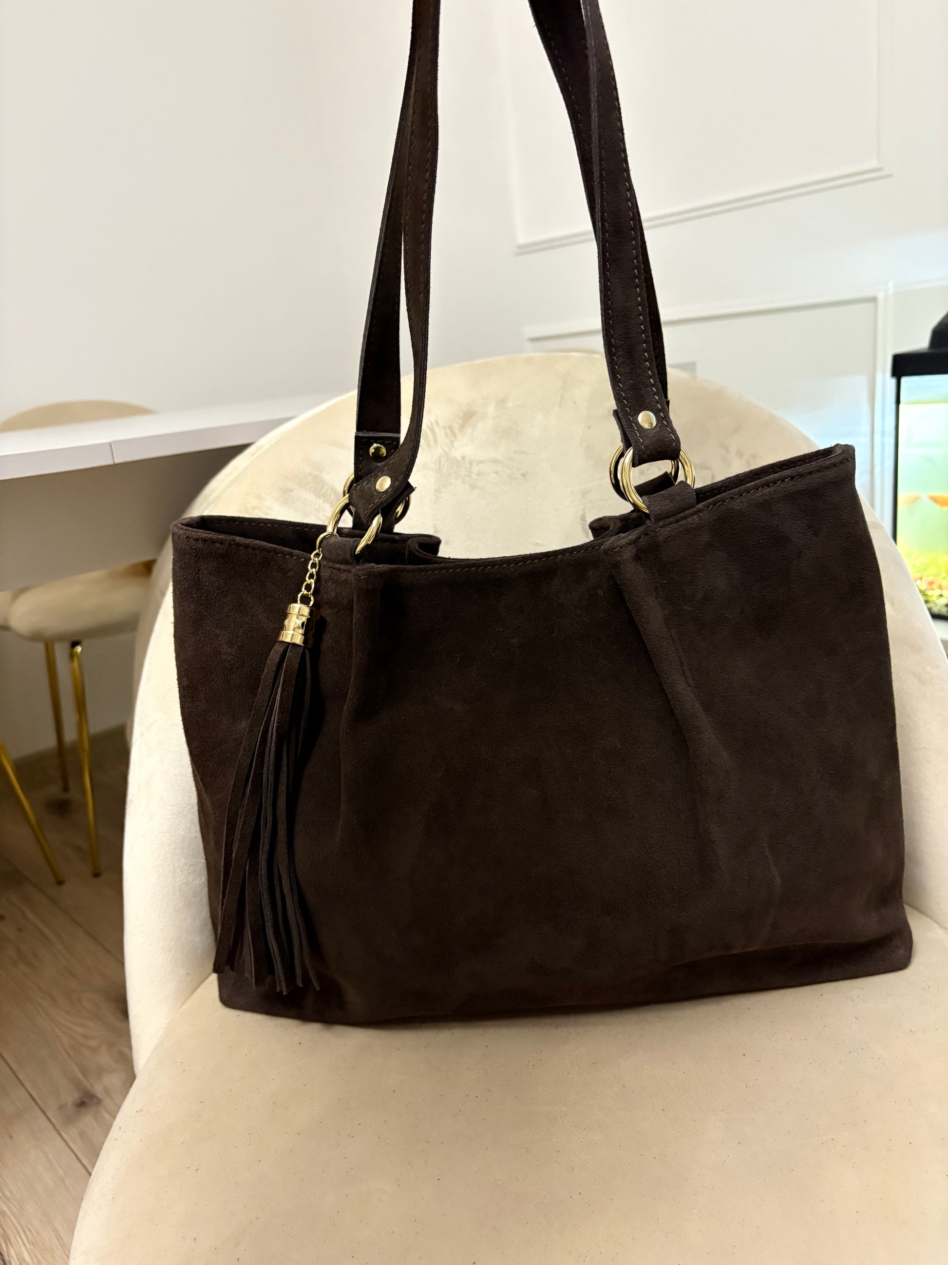 NOWOŚĆ Torebka zamsz naturalny czekolada włoska