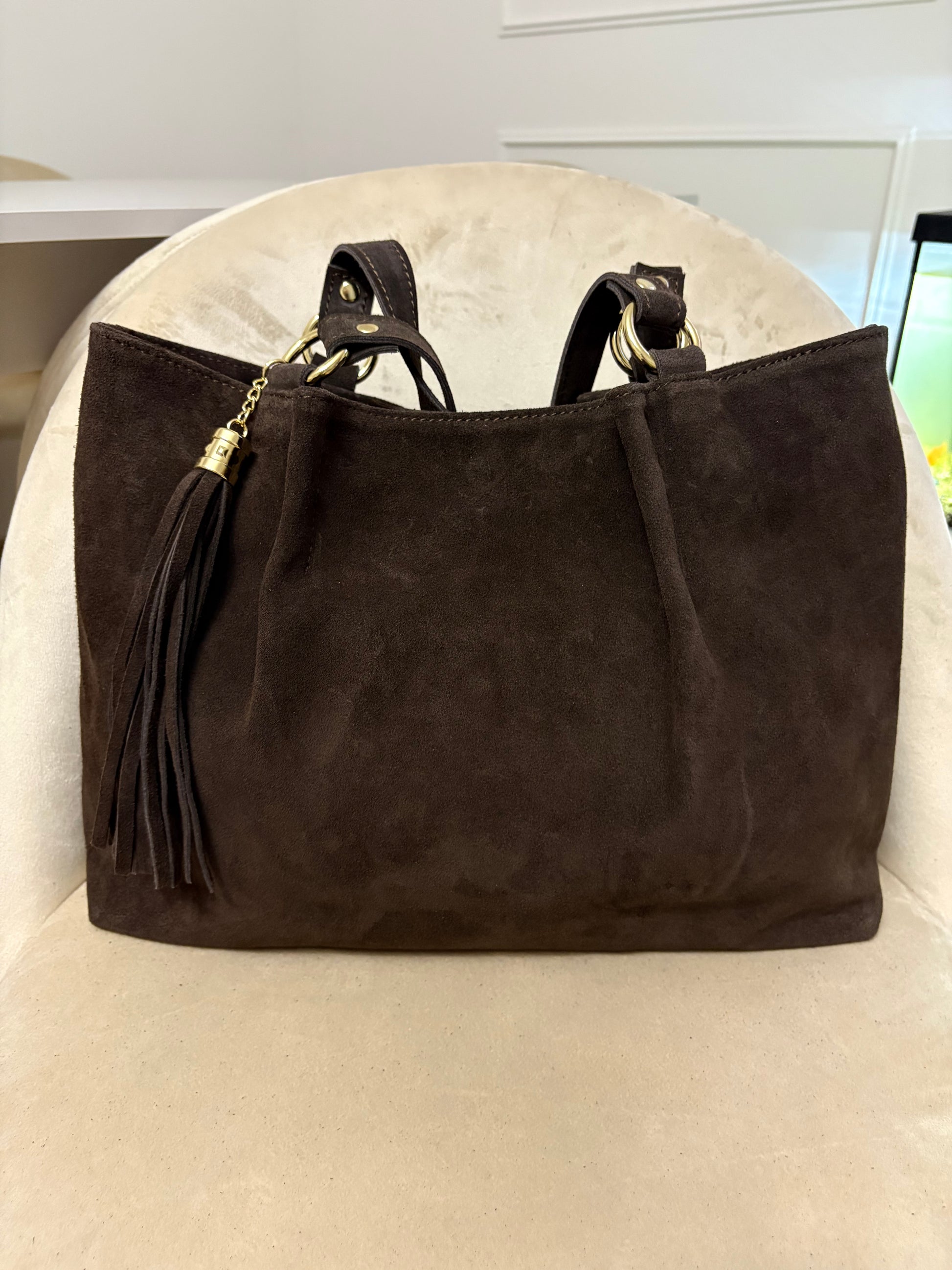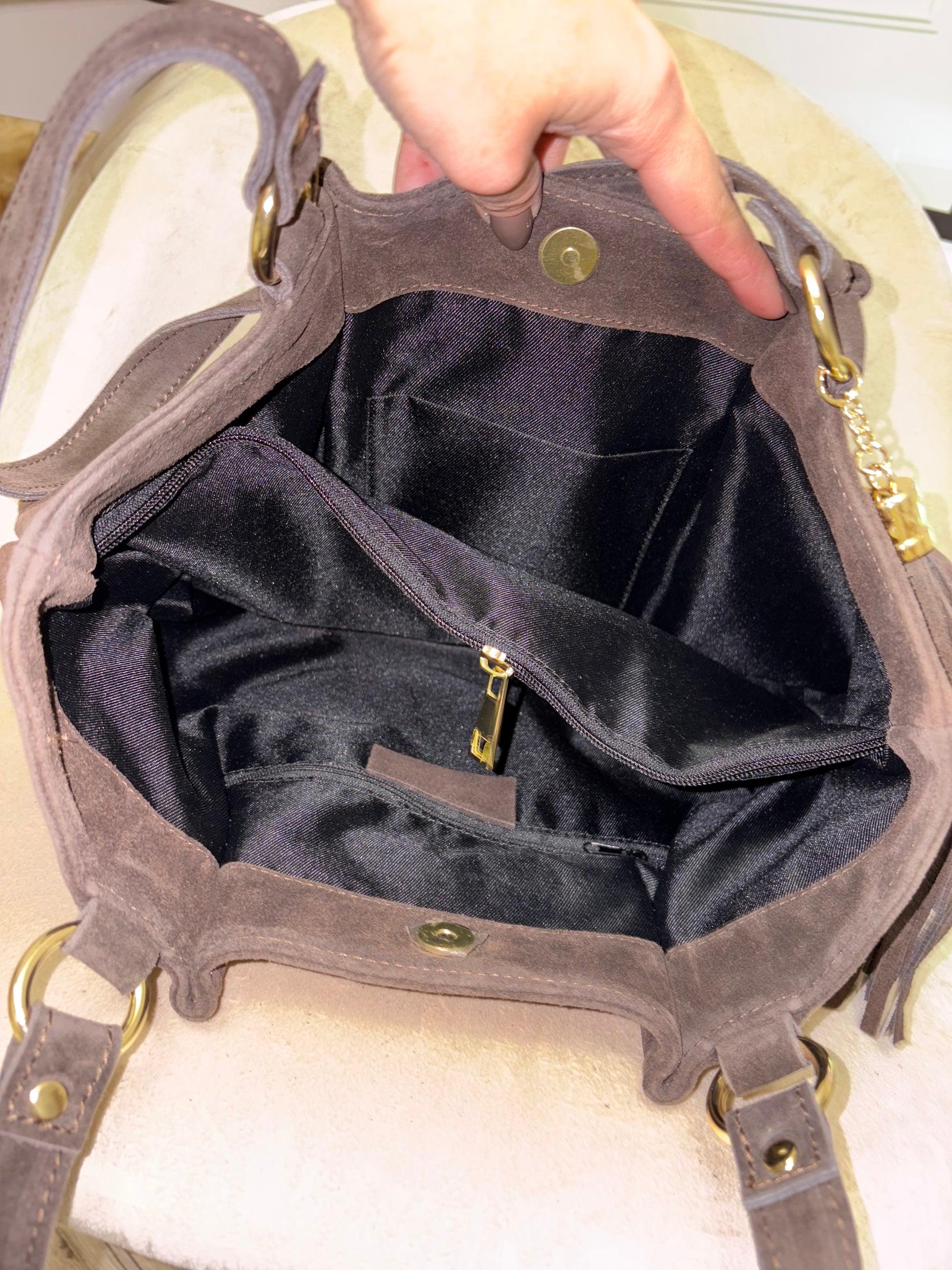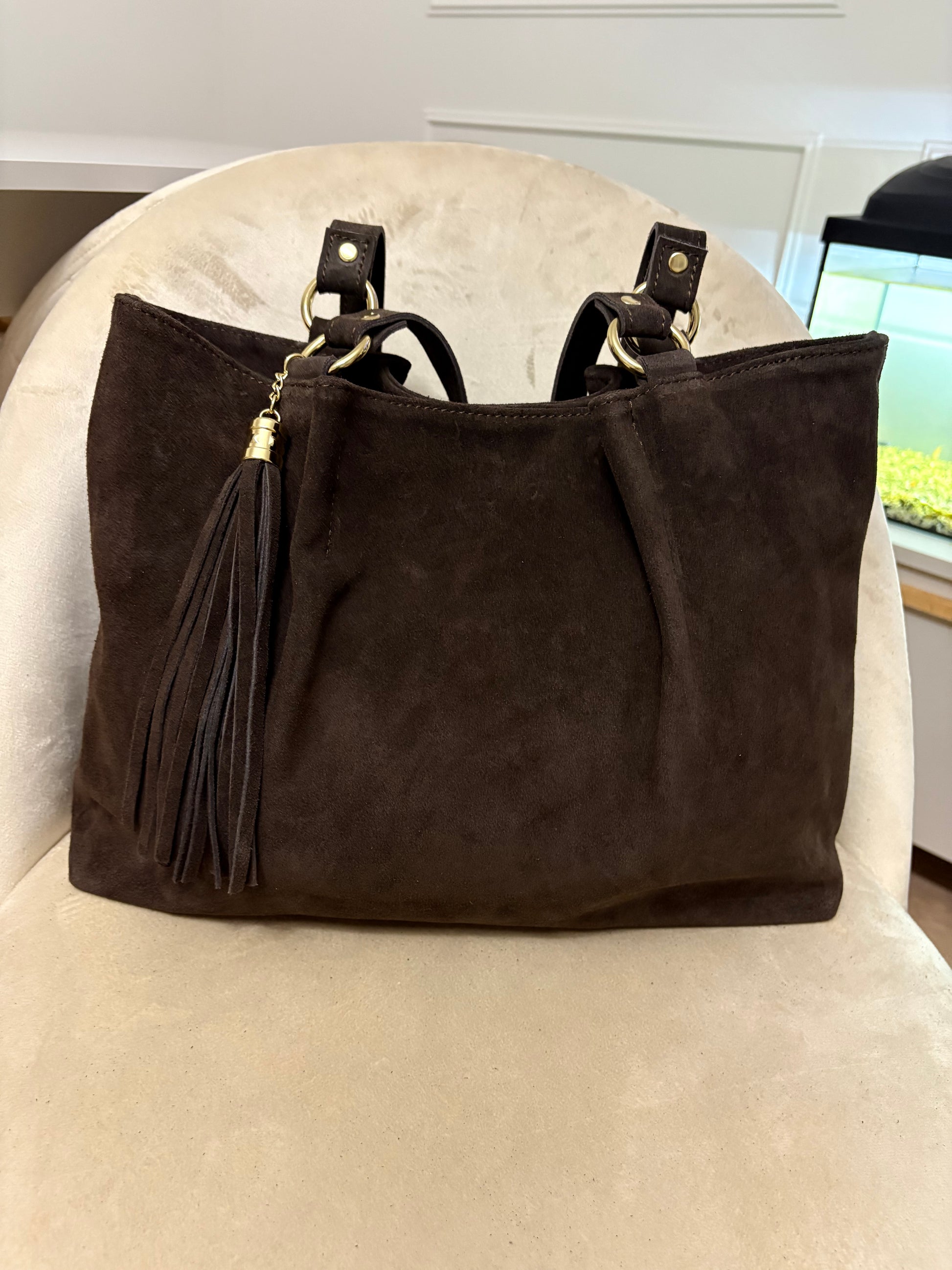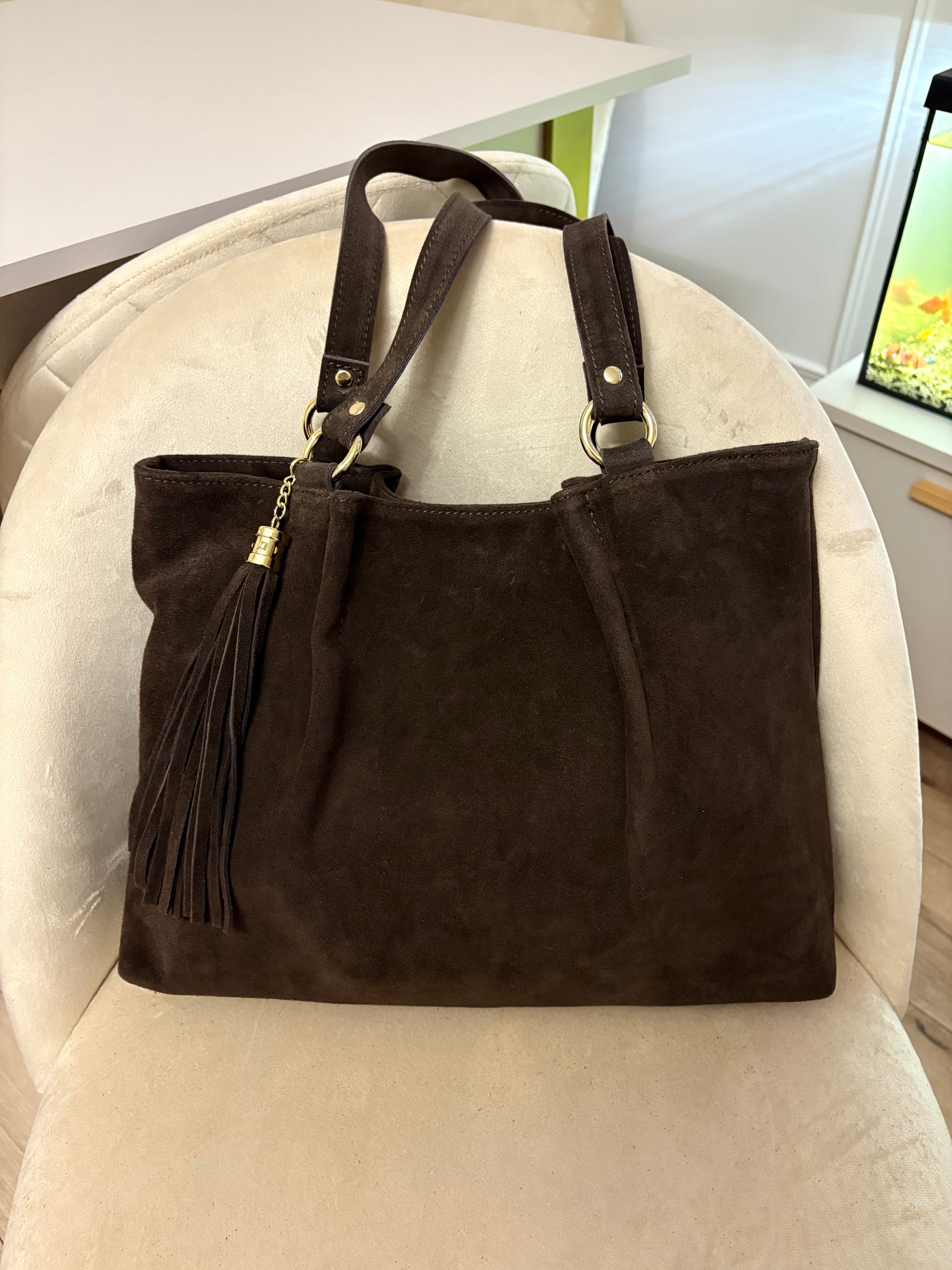 NOWOŚĆ Torebka zamsz naturalny czekolada włoska