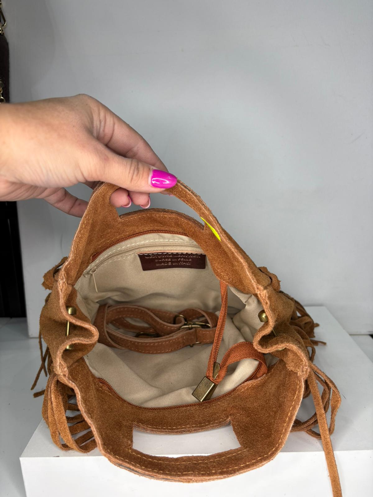 NOWOŚĆ Torebka zamsz naturalny camel włoska