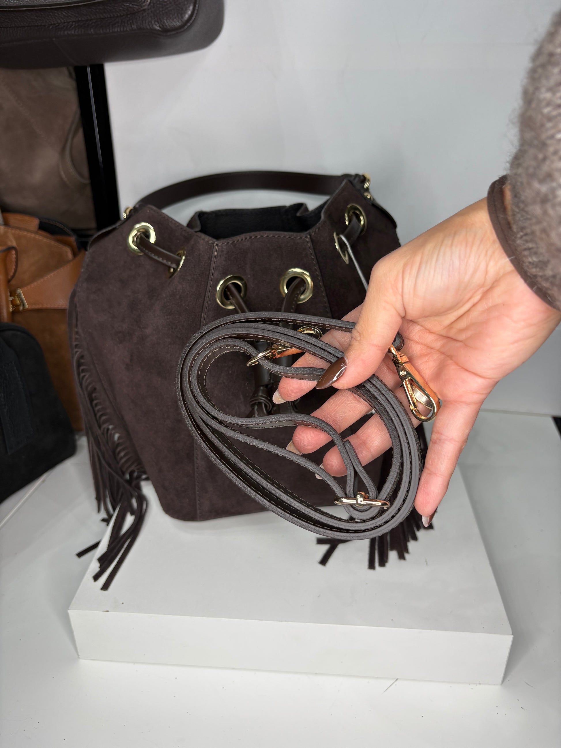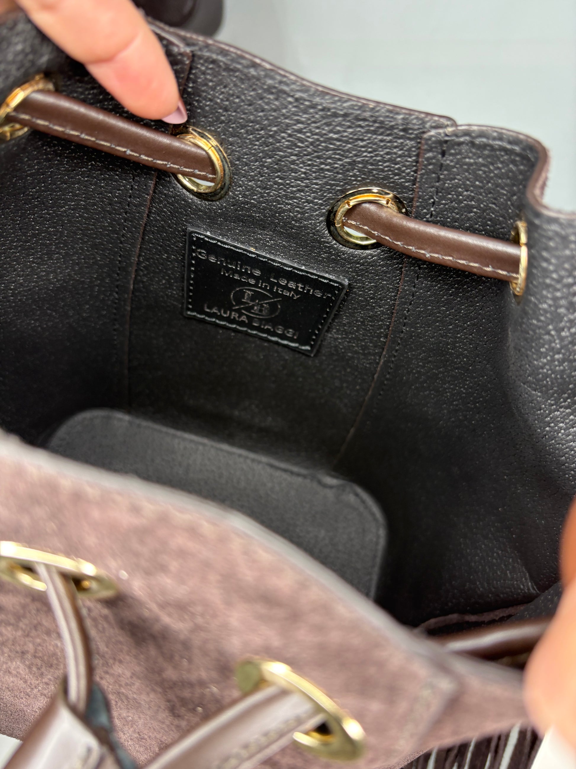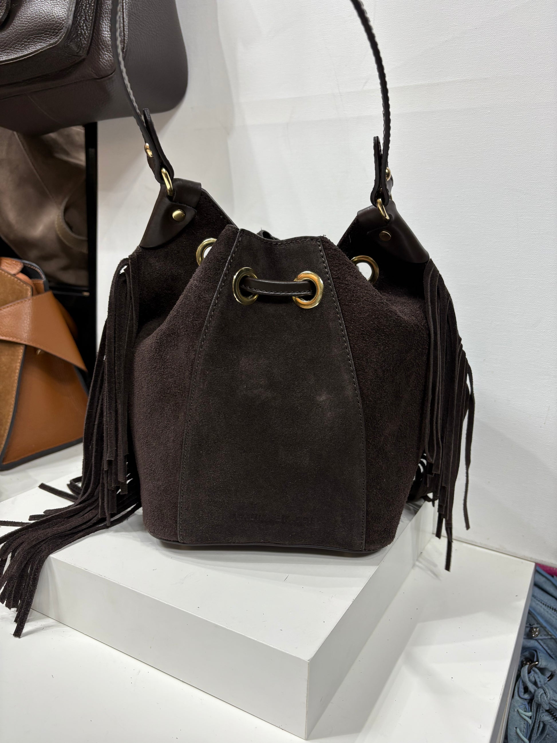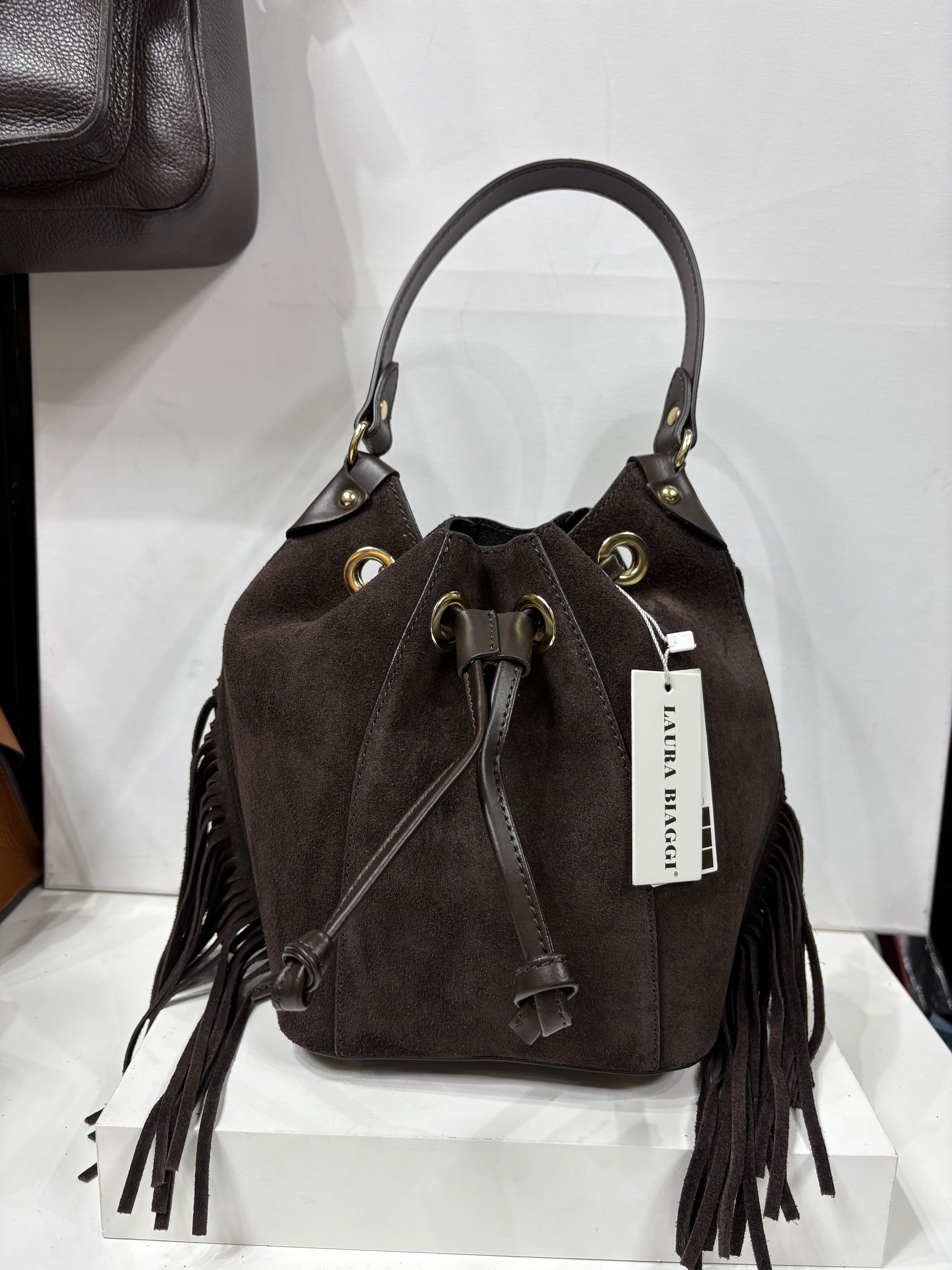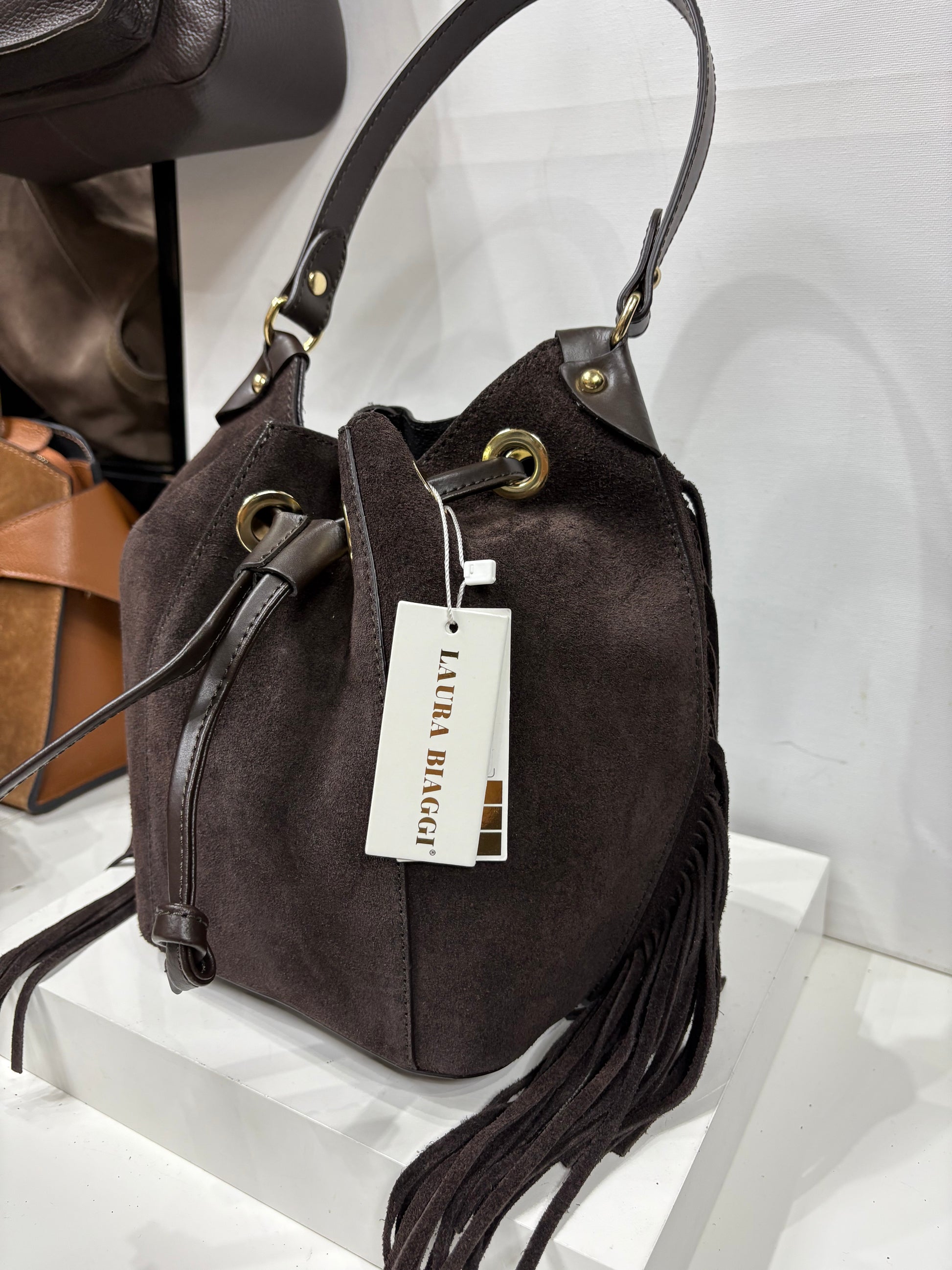 NOWOŚĆ Torebka Laura Biaggi zamsz naturalny czekolada