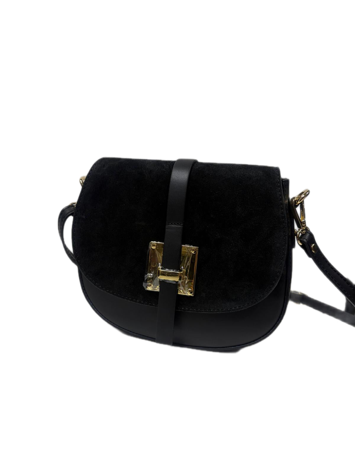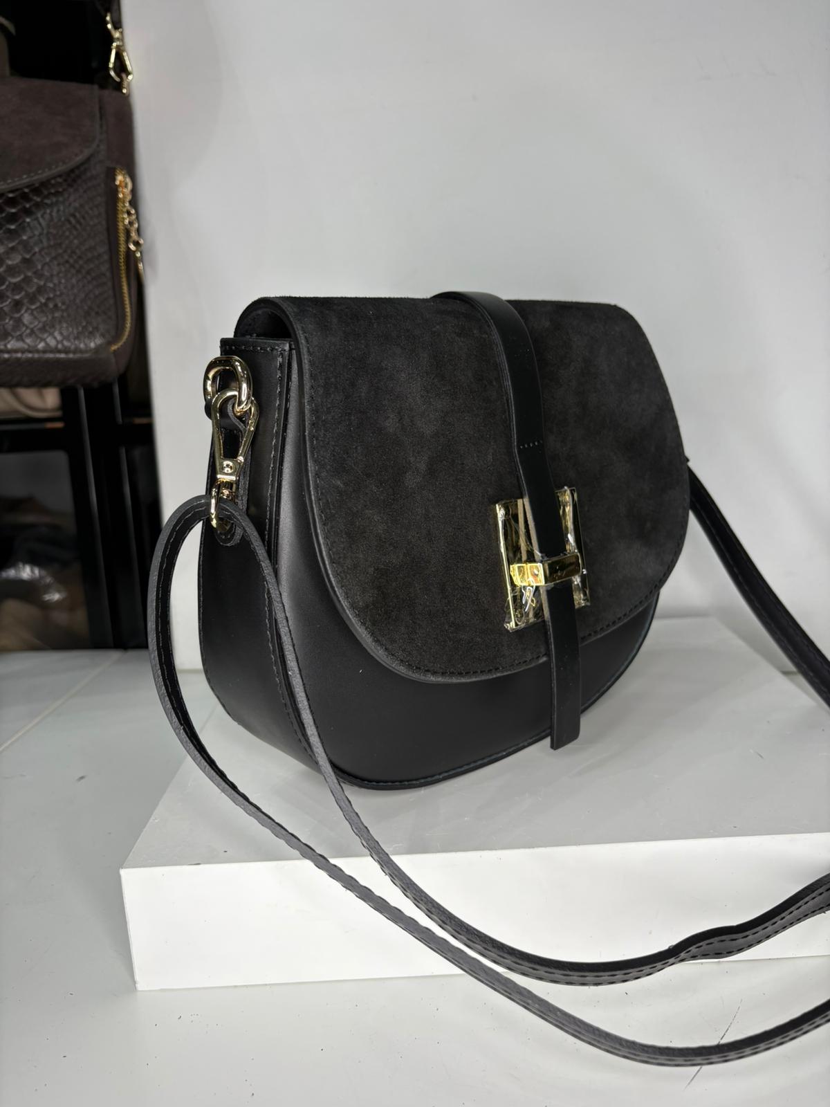 NOWOŚĆ Torebka zamsz naturalny + skóra naturalna czarna włoska