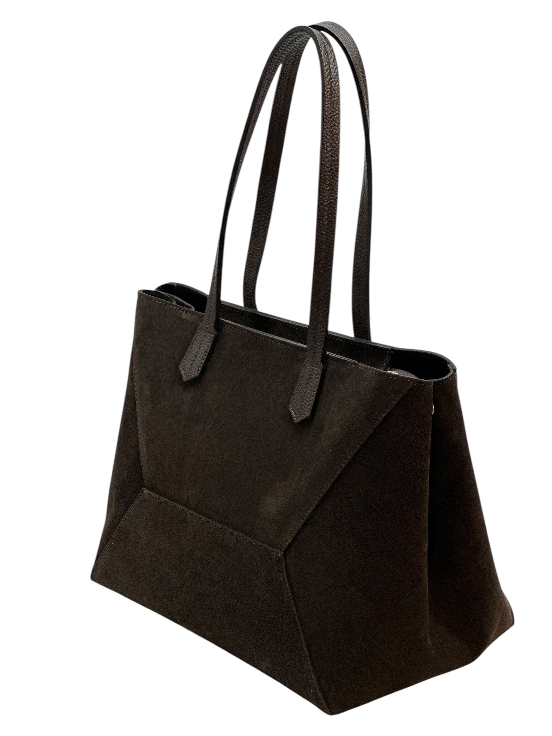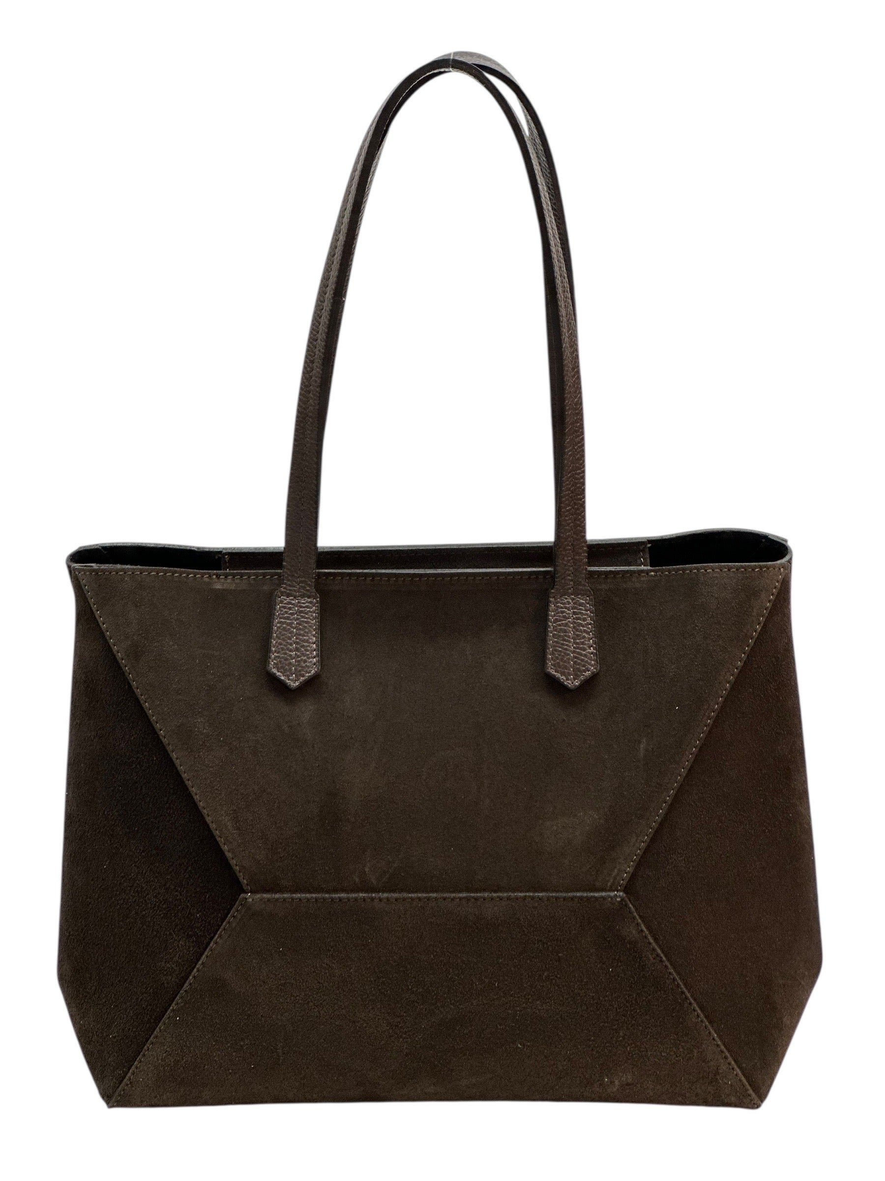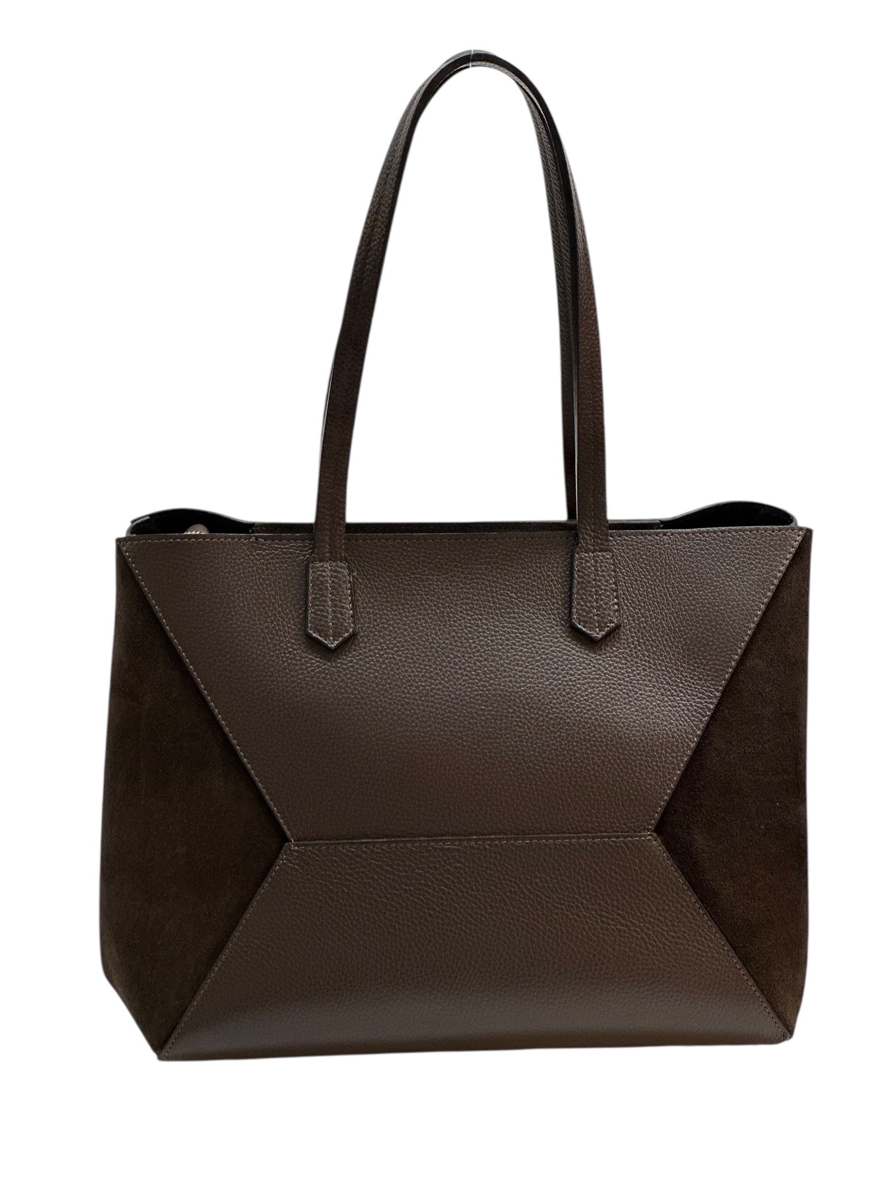 NOWOŚĆ Torebka zamsz naturalny skóra naturalna dwustronna czekolada włoska