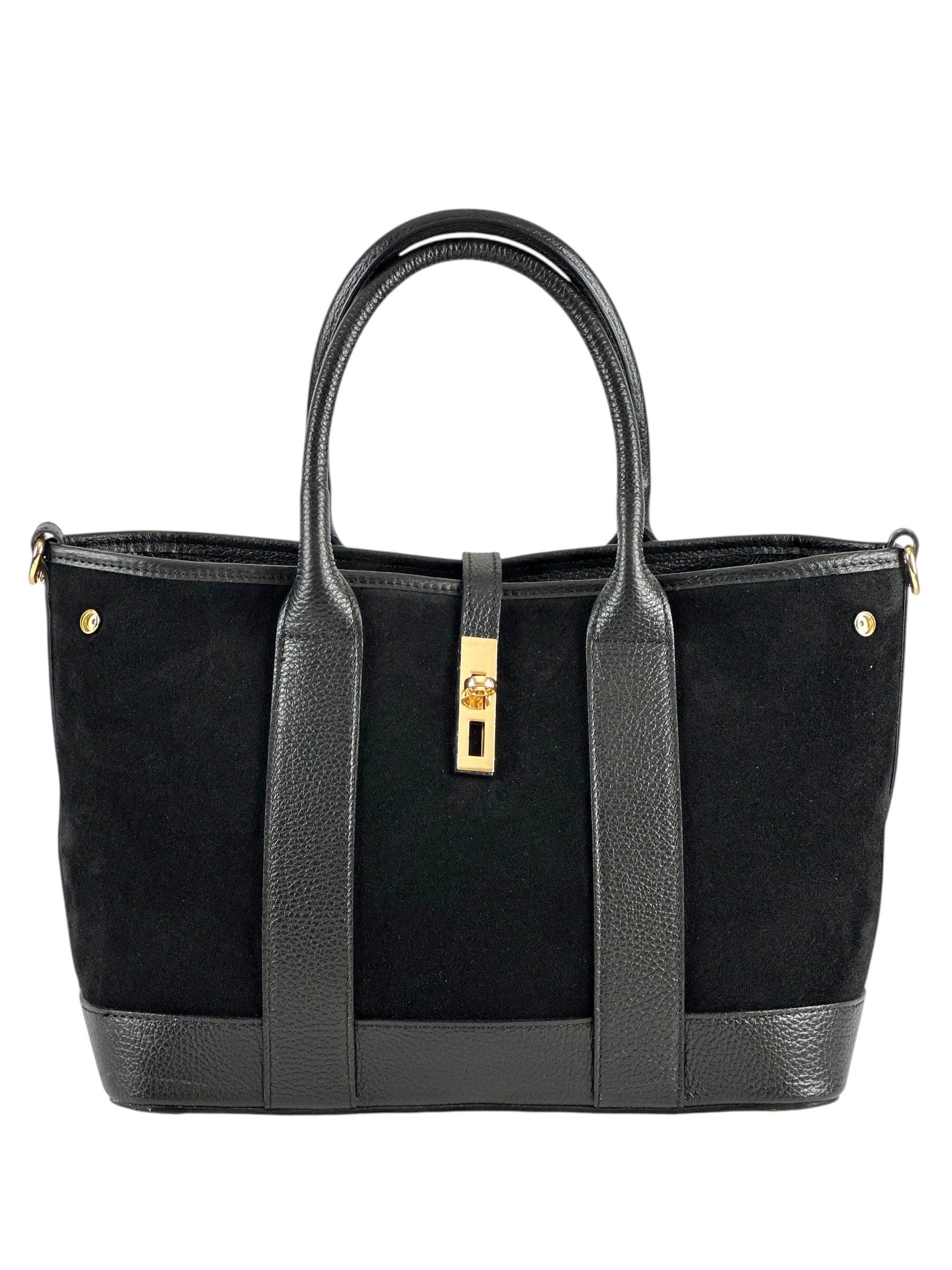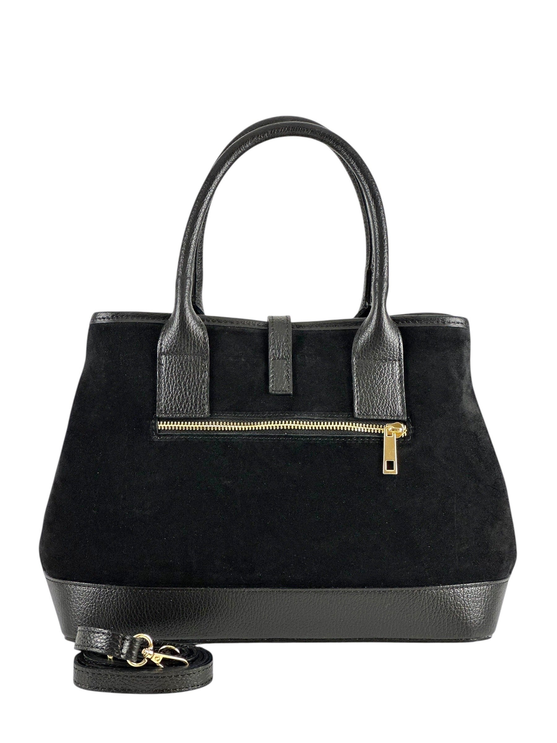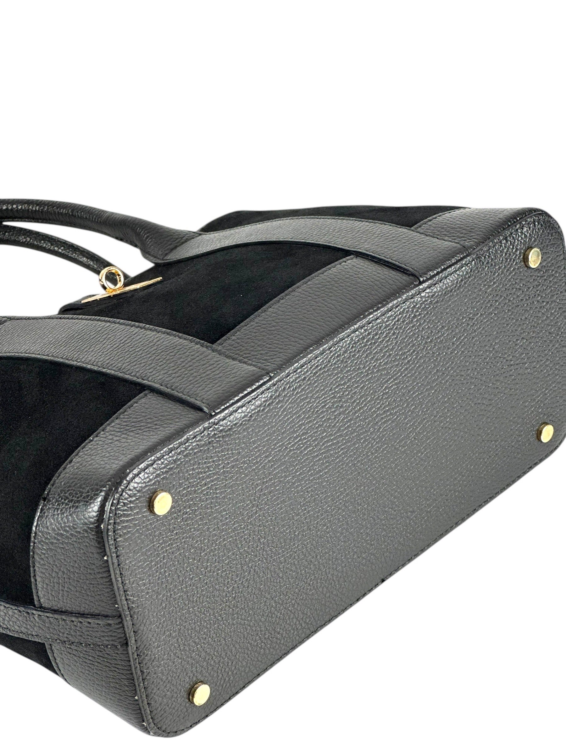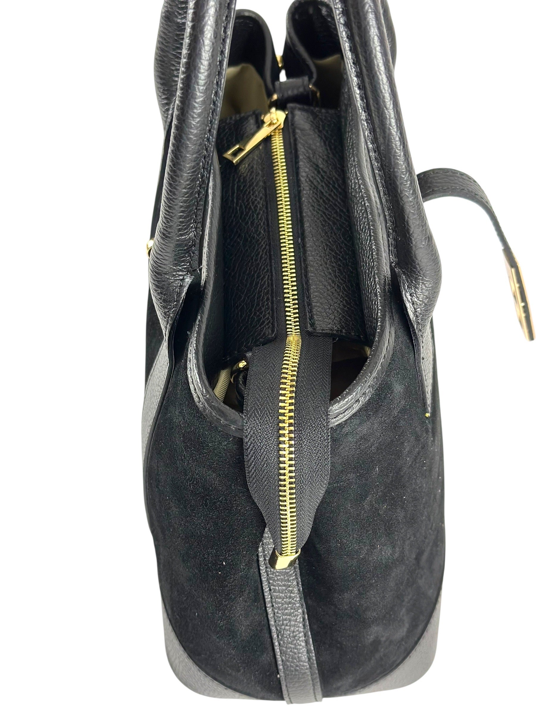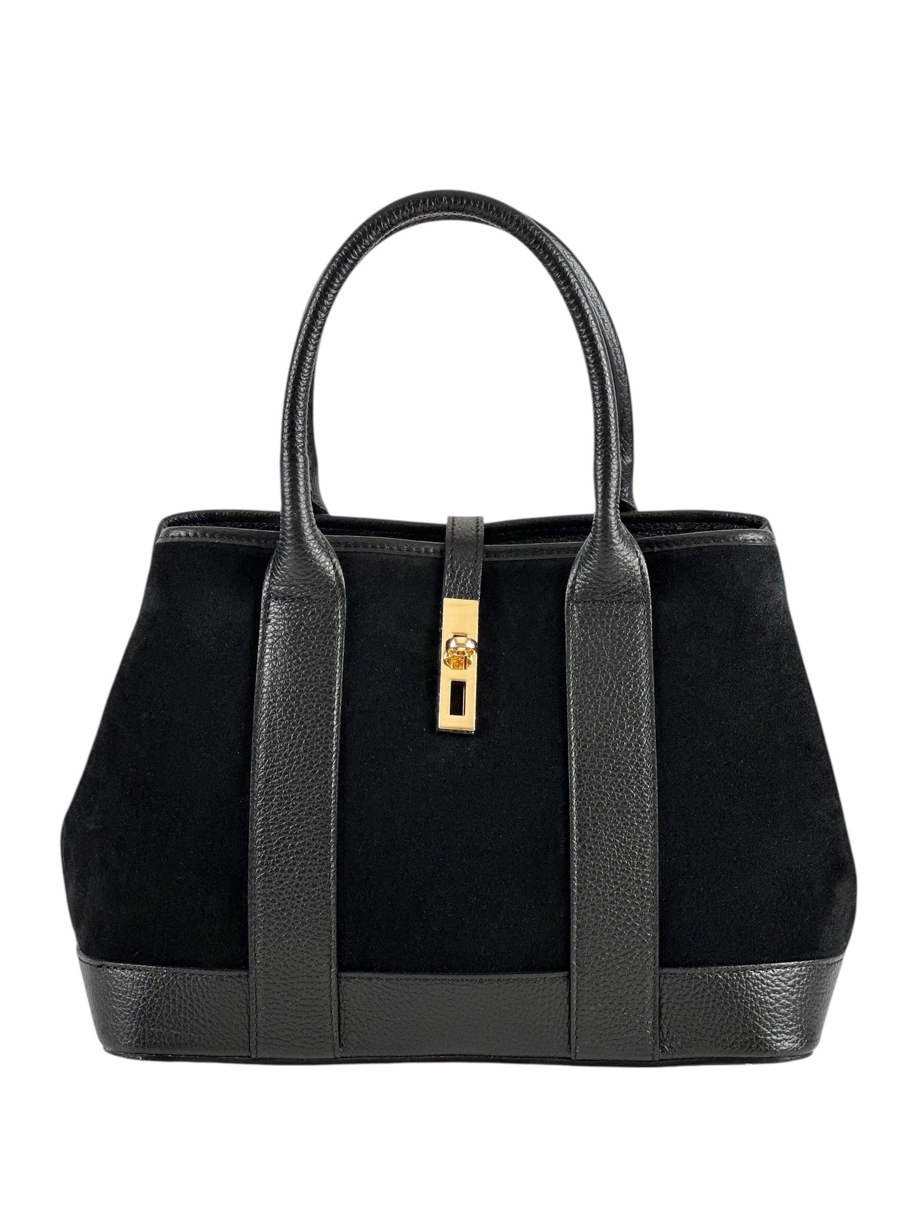 NOWOŚĆ Torebka zamsz naturalny skóra naturalna czarna włoska