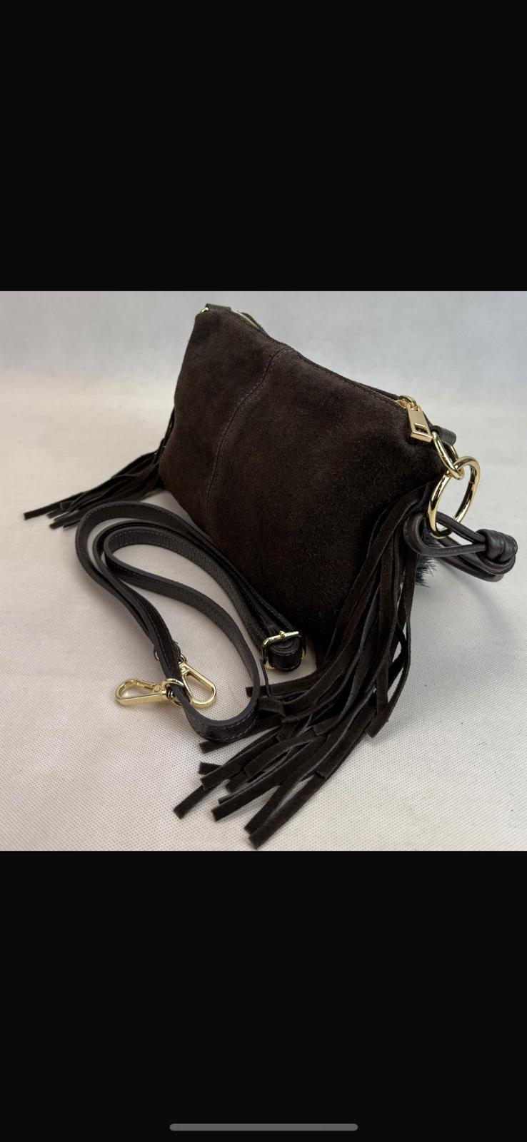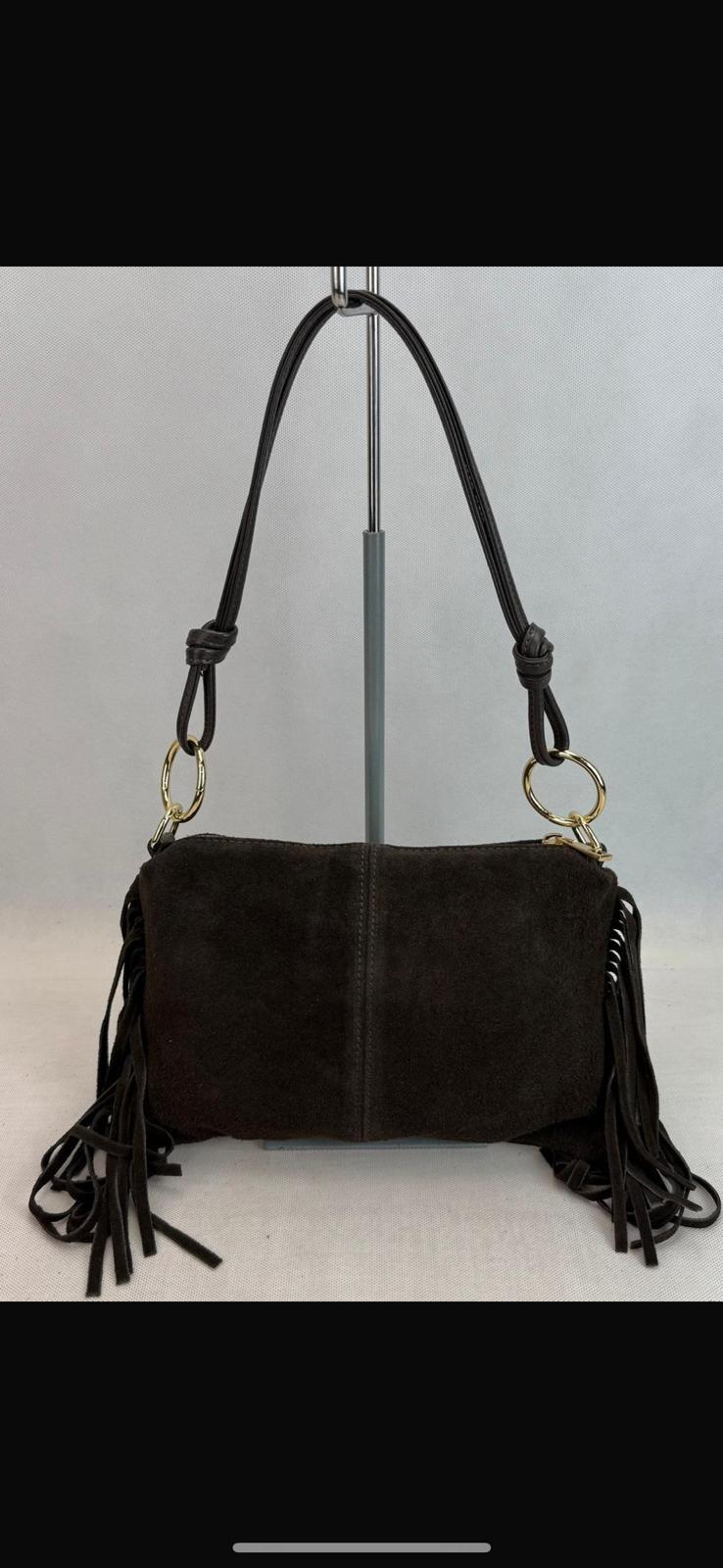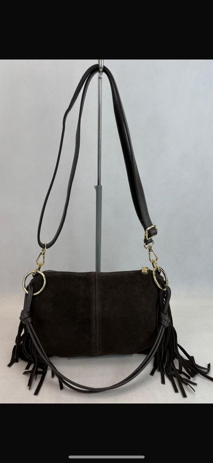 NOWOŚĆ Torebka zamsz naturalny VEZZE czekolada