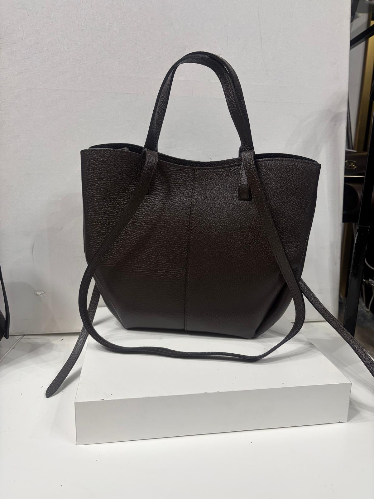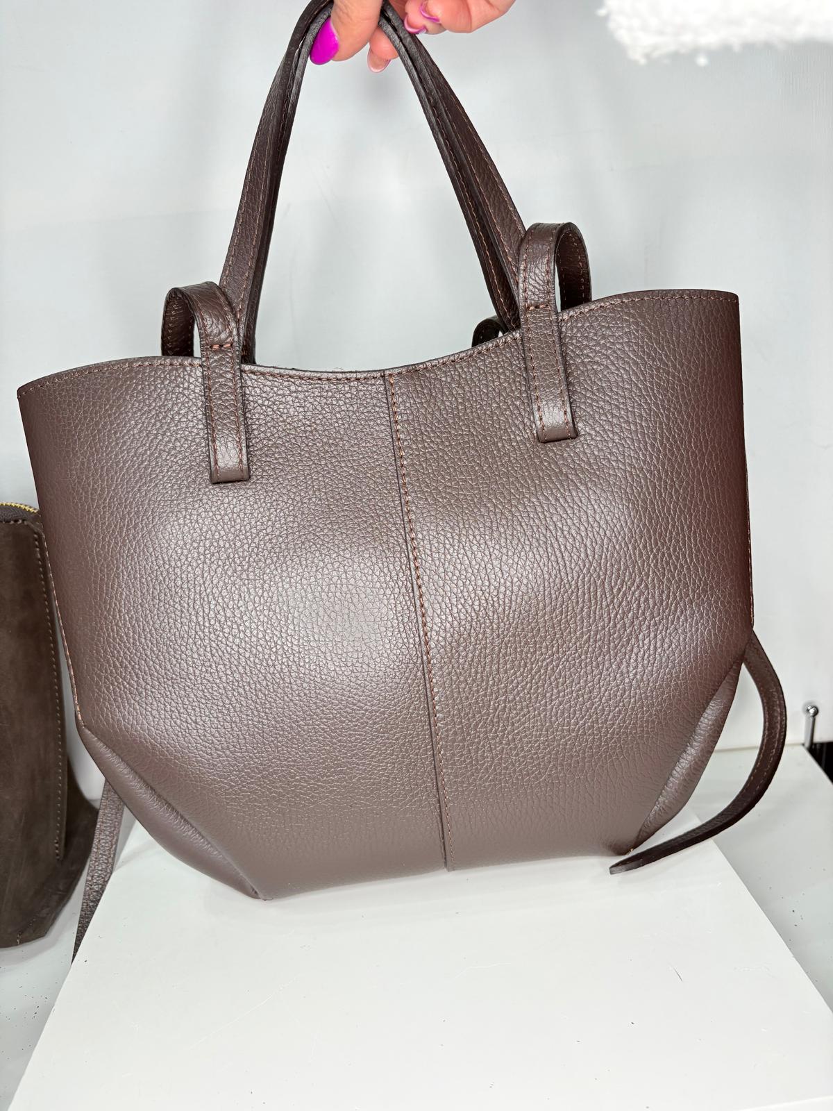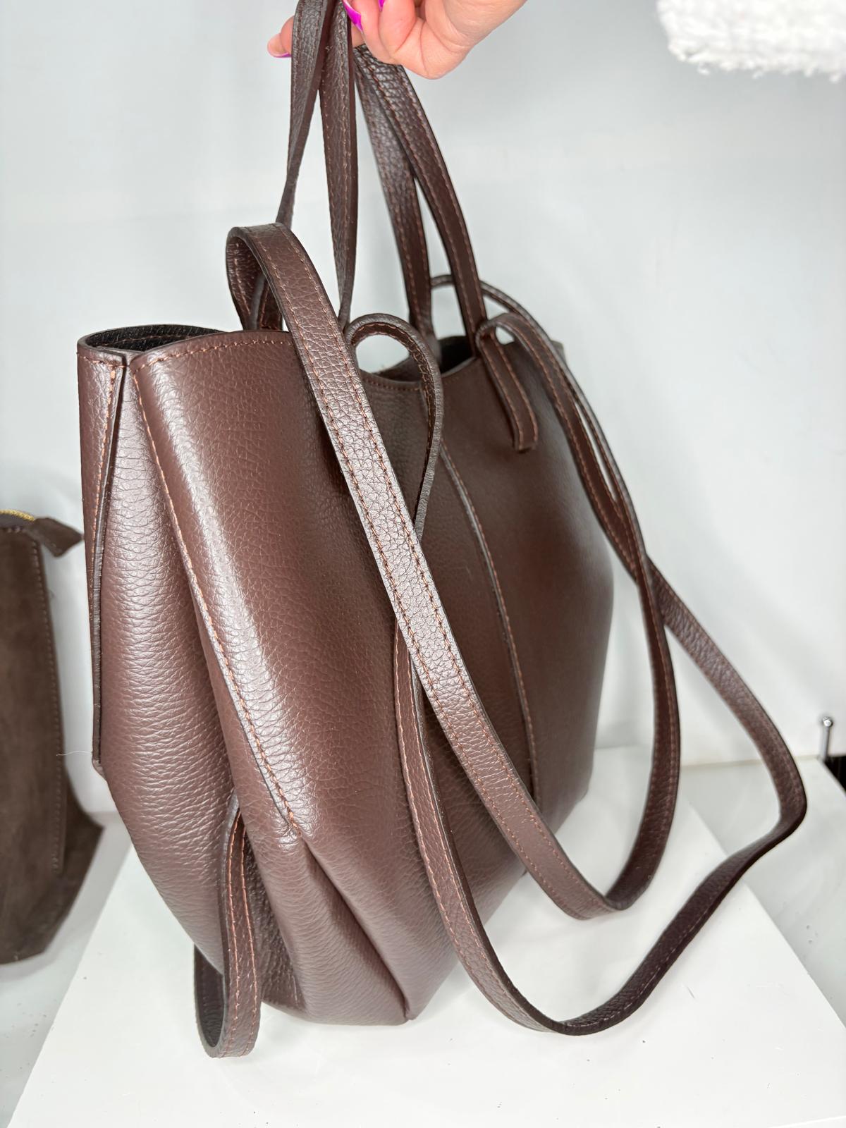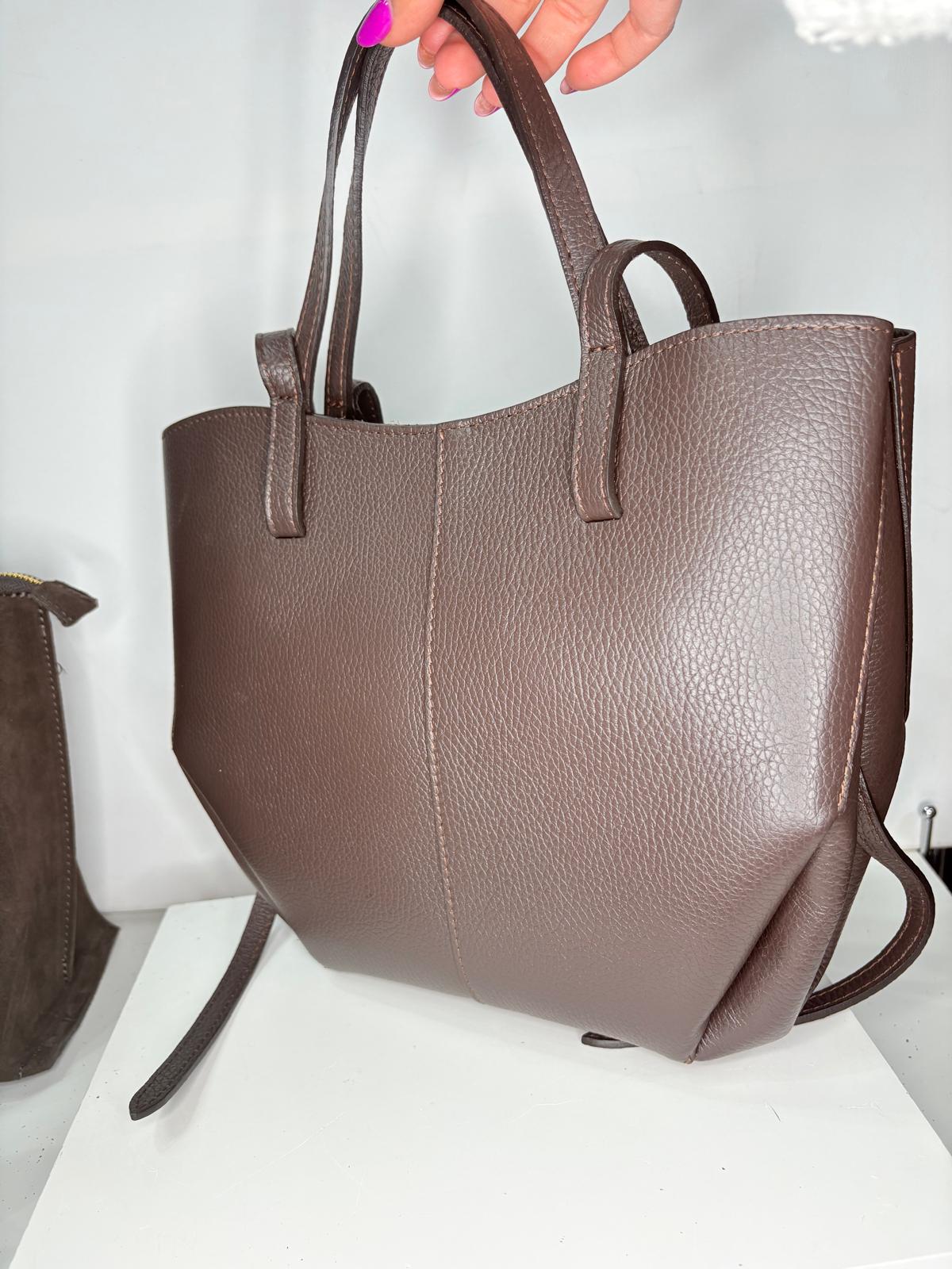 NOWOŚĆ VERA PELLE torebka damska łódka skóra naturalna ITALY brąz czekolada