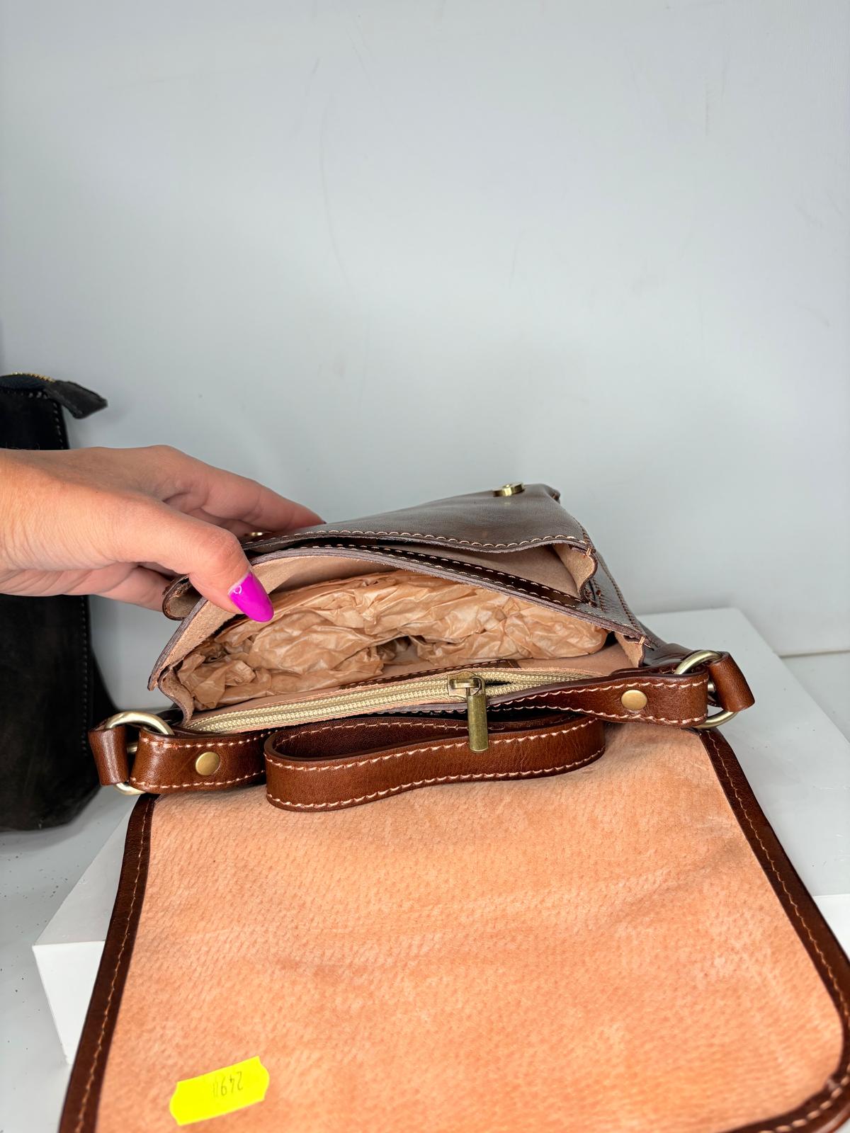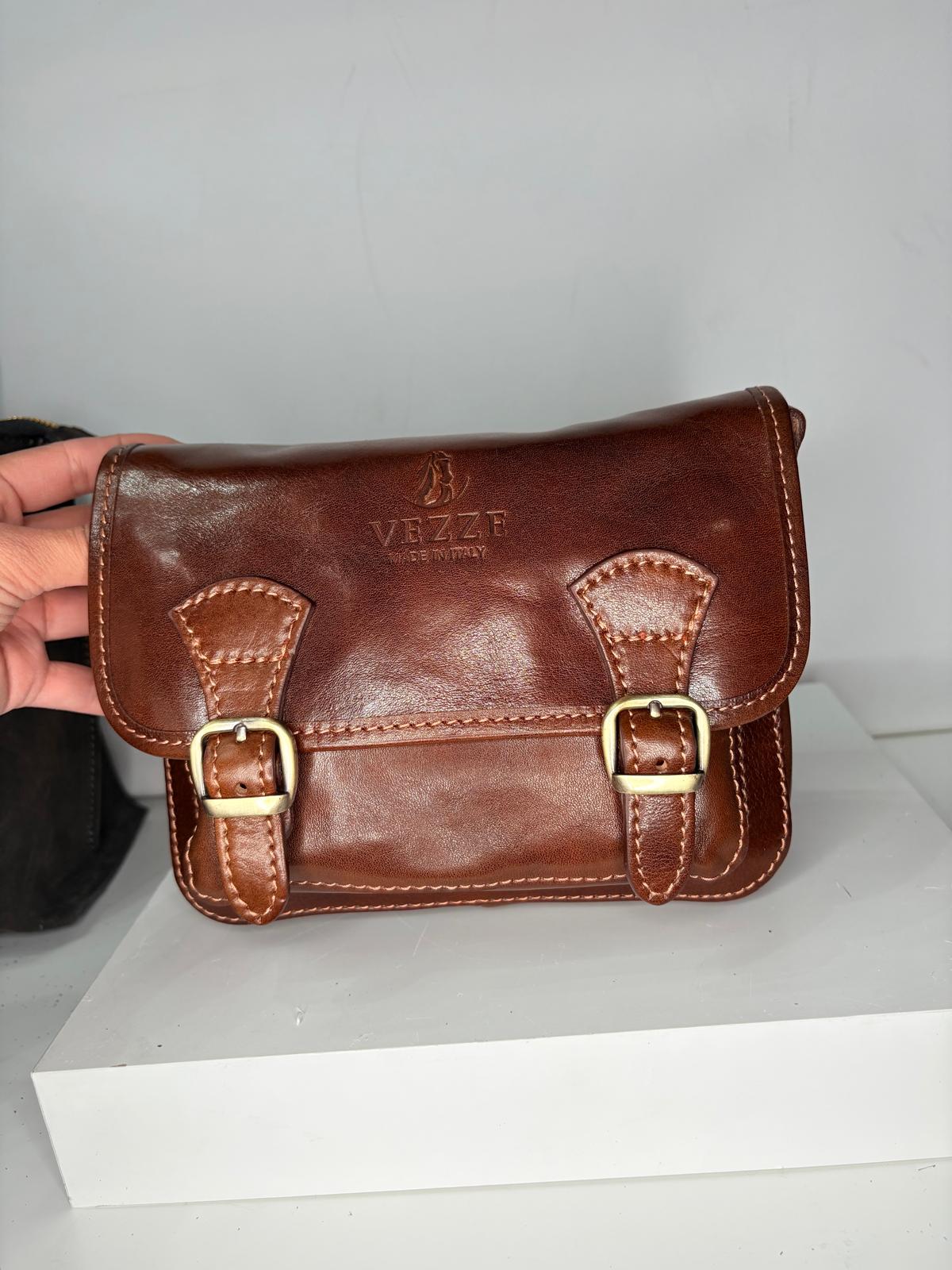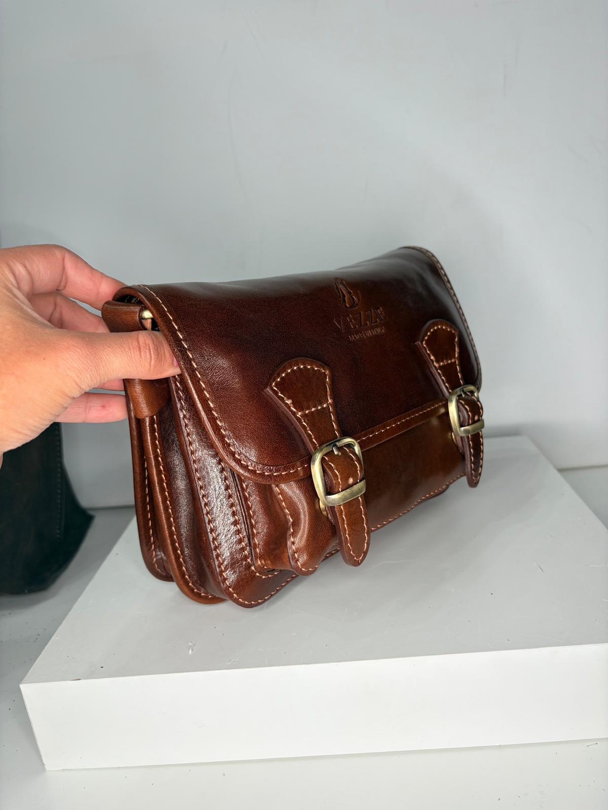 NOWOŚĆ VERA PELLE Torebka listonoszka brązowa retro skóra naturalna