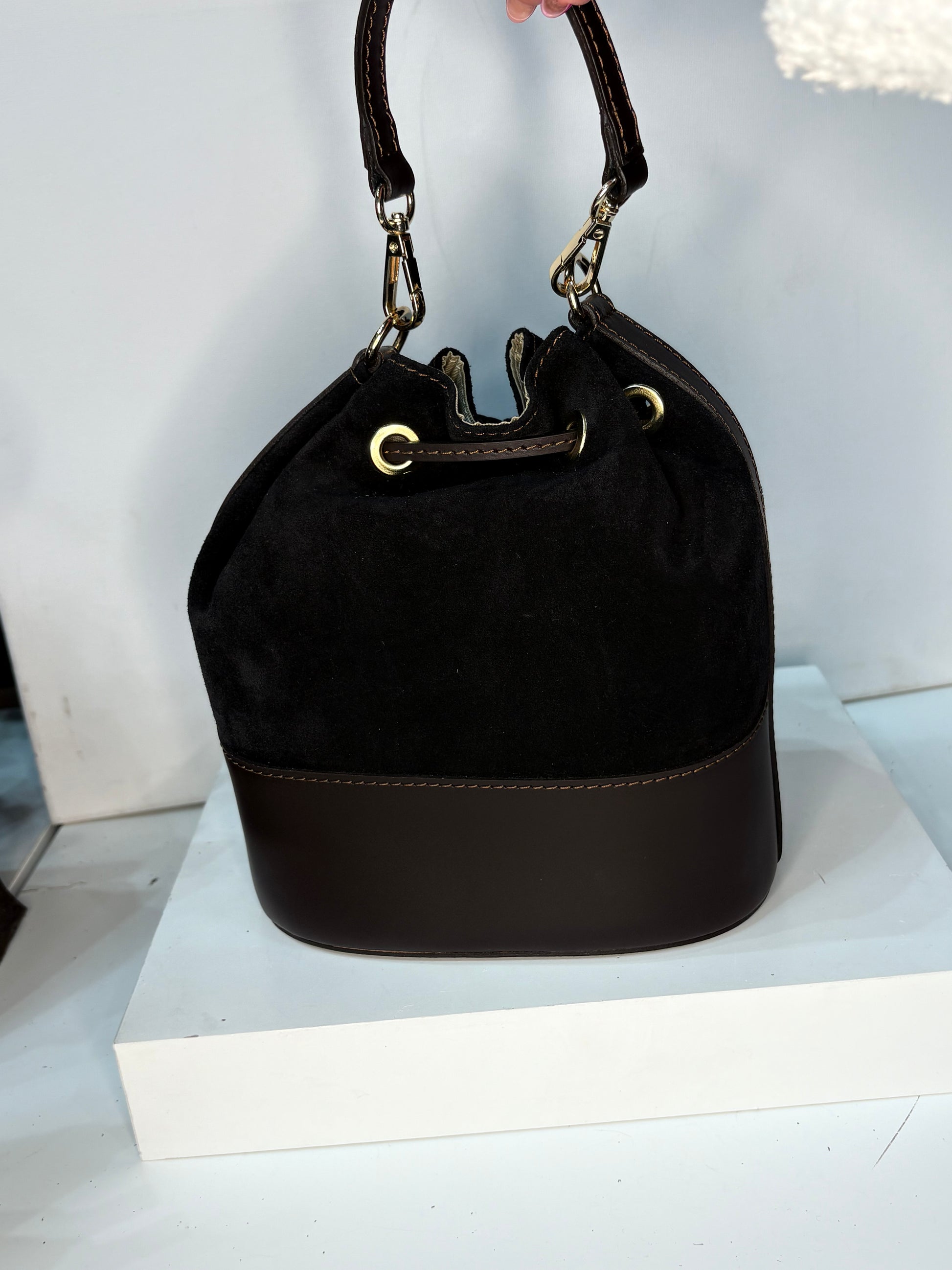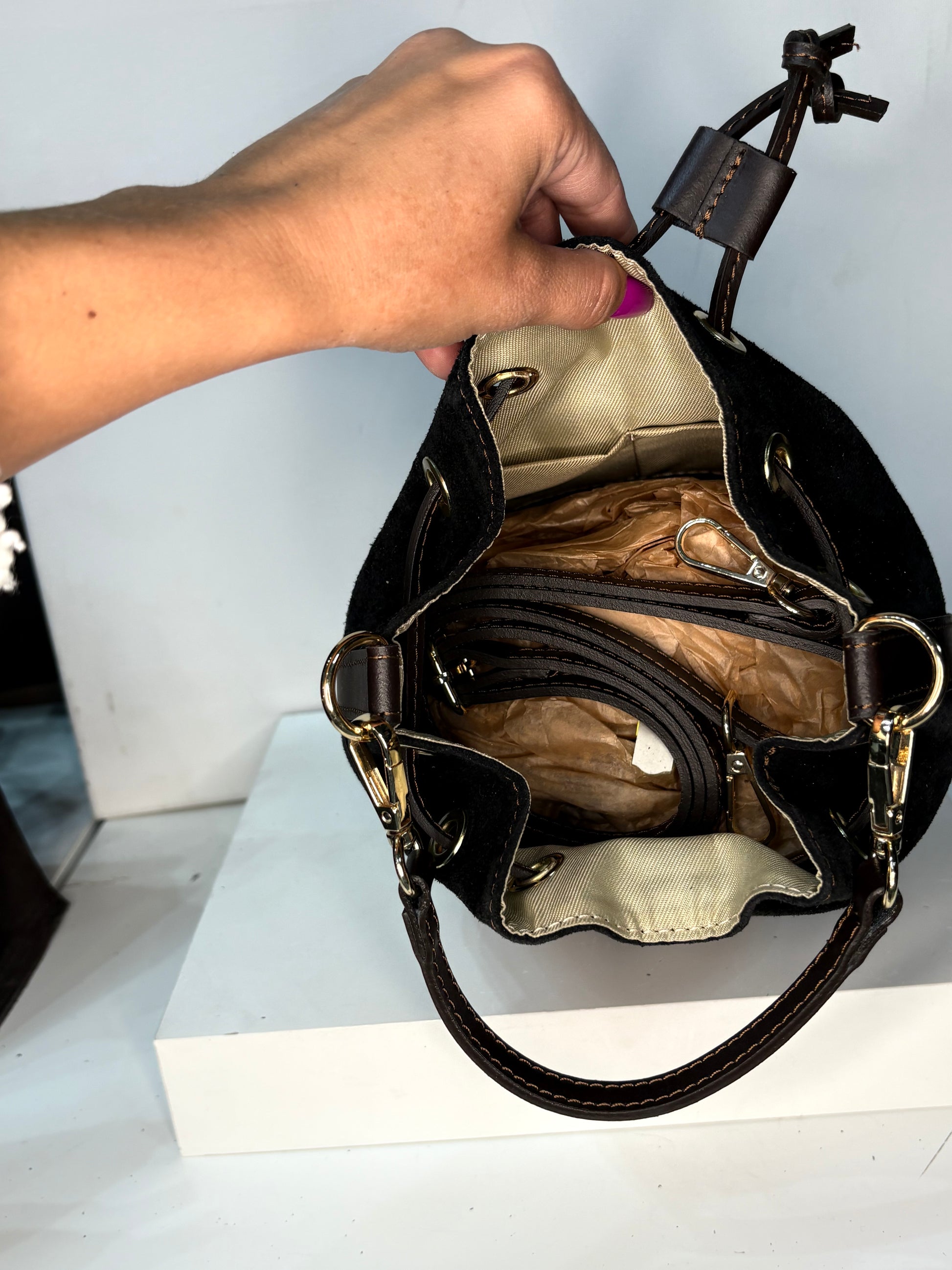 NOWOŚĆ VEZZE zamsz naturalny czarna brąz torba typu worek