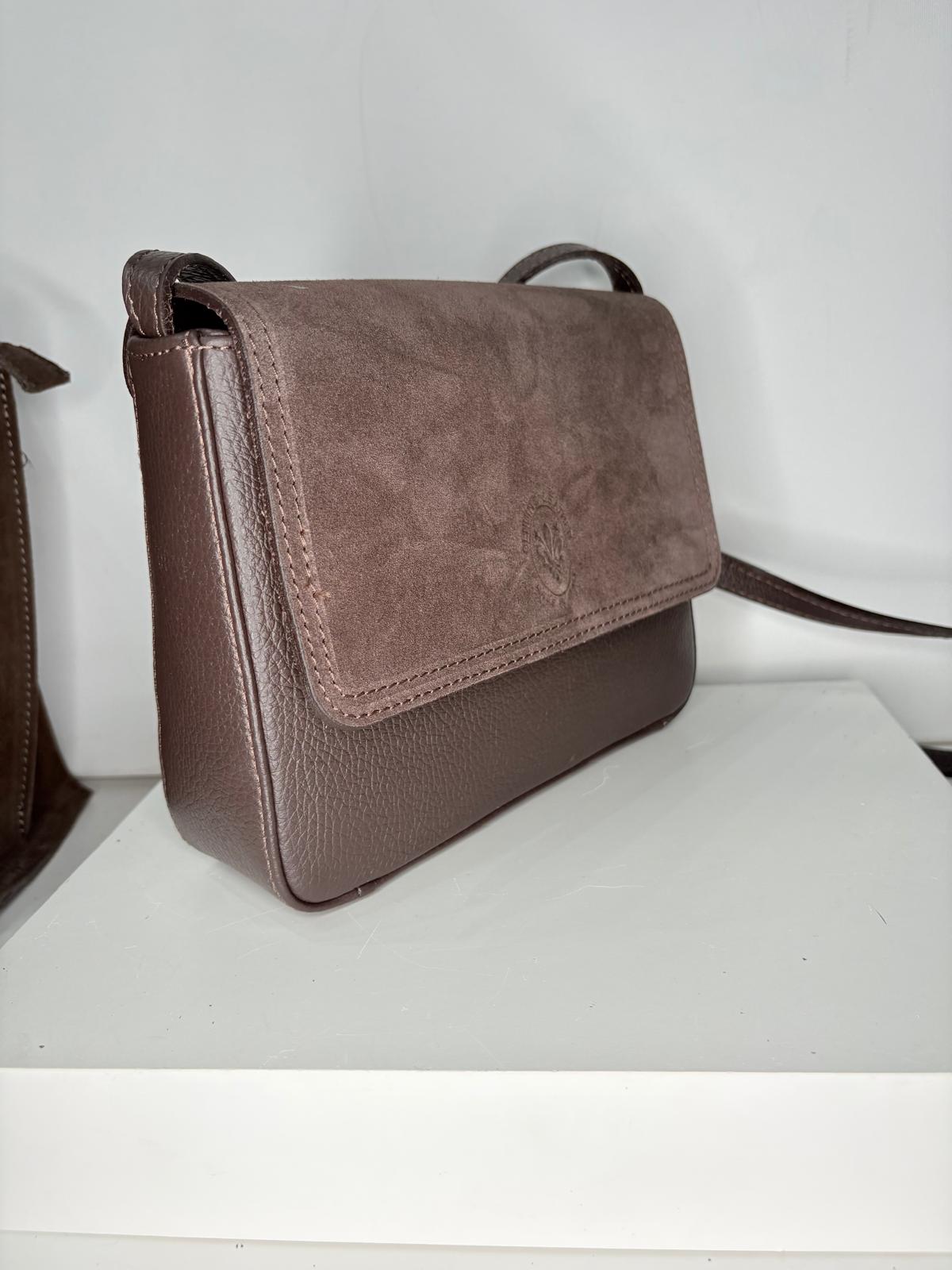 NOWOŚĆ zamszowa torebka damska Listonoszka nerka Vera Pelle brąz