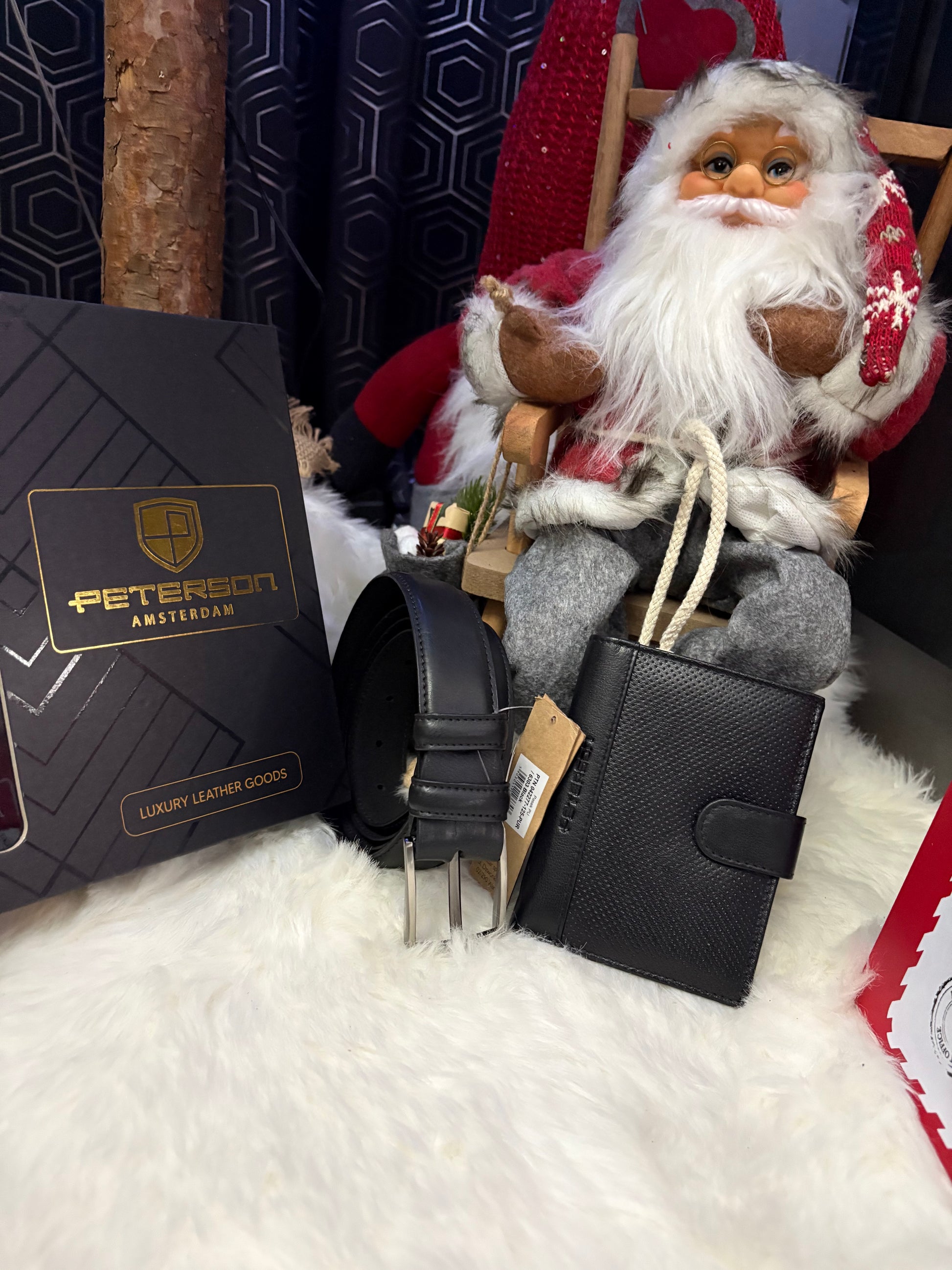 Nowość Zestaw męski, prezentowy skórzany portfel męski i pasek PETERSON skóra naturalna