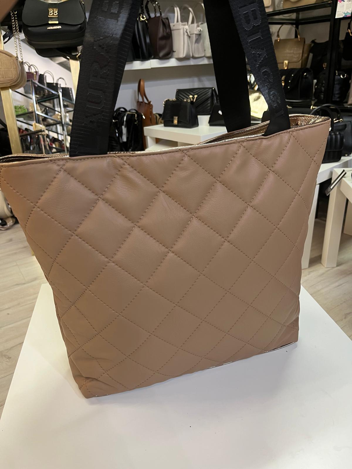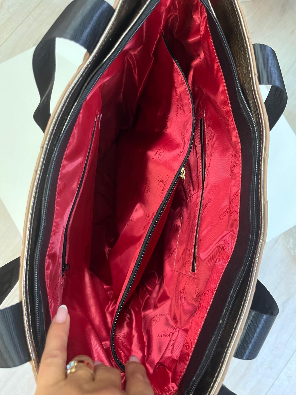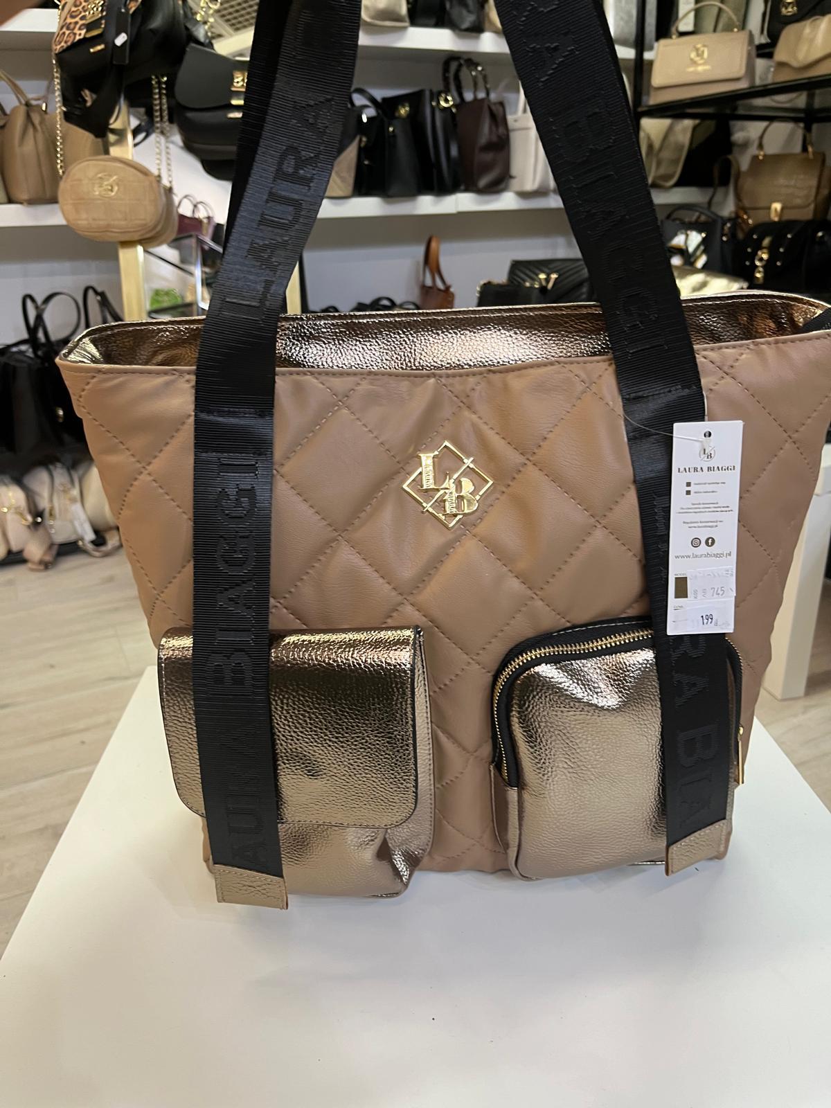 Torebka A4 Laura Biaggi shopper pikowana z kieszonkami toupe
