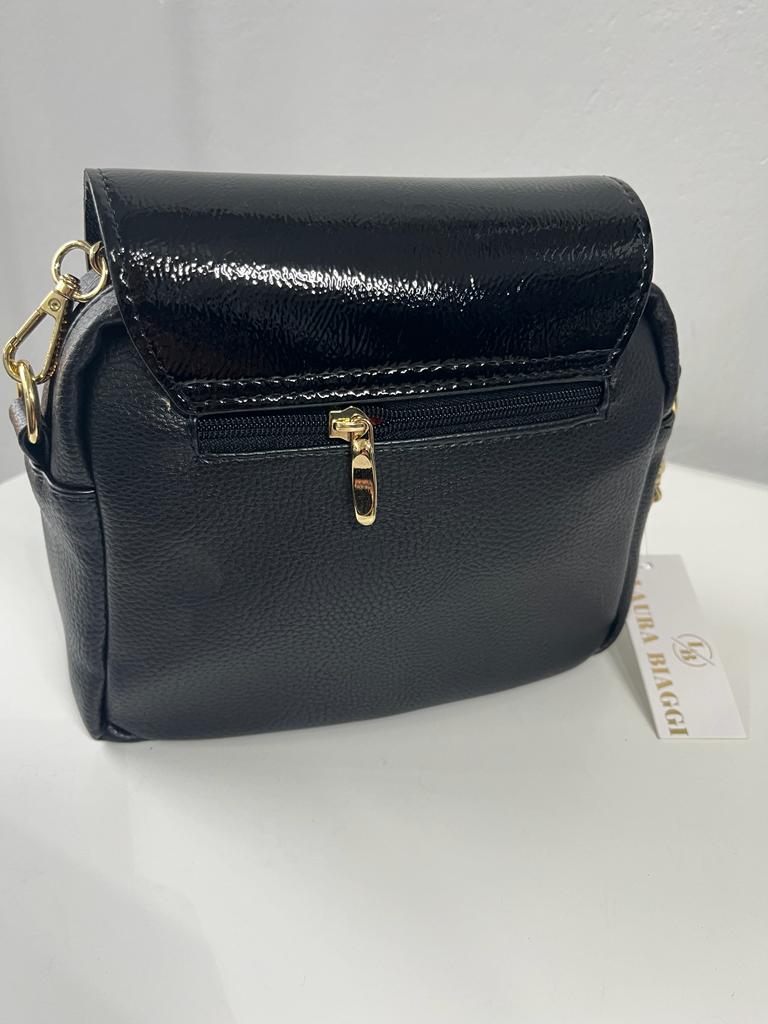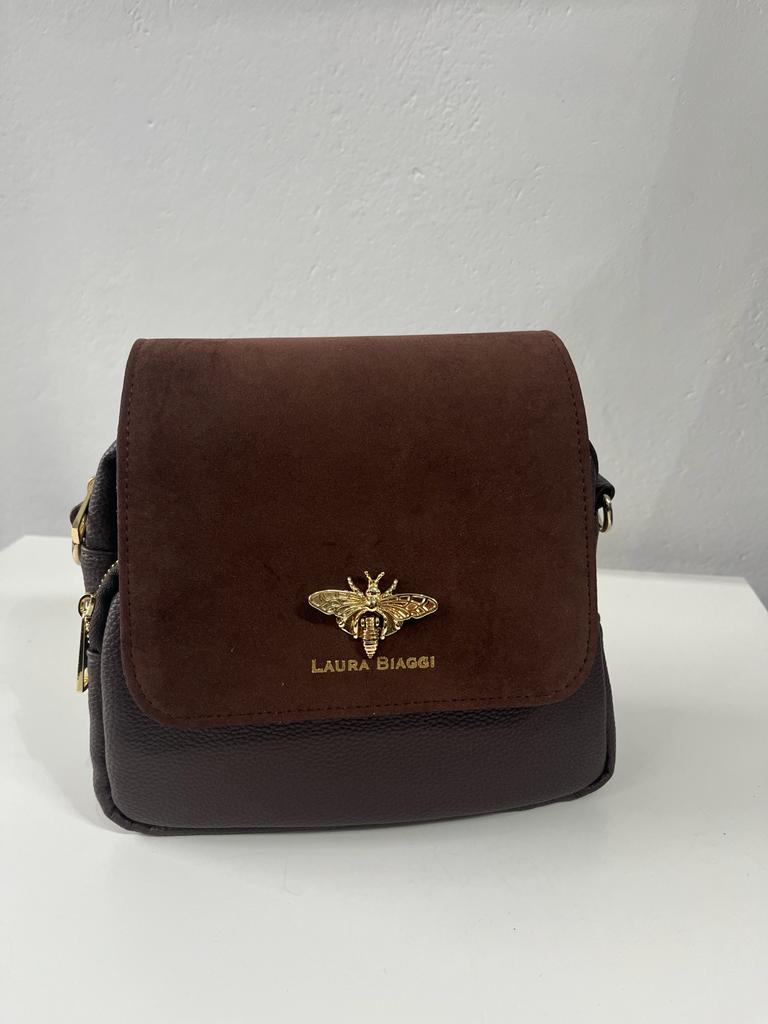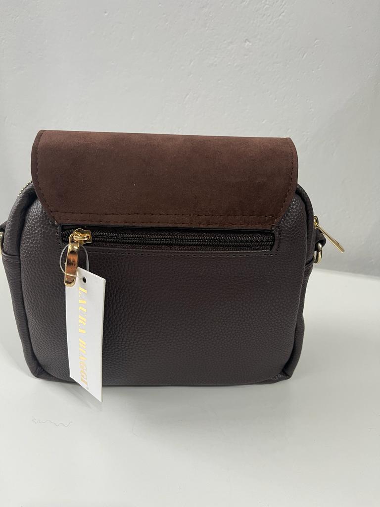 Torebka polskiej firmy Laura Biaggi wykonana z wysokiej jakości skóry ekologicznej połączonej z efektowną zamszową klapką.