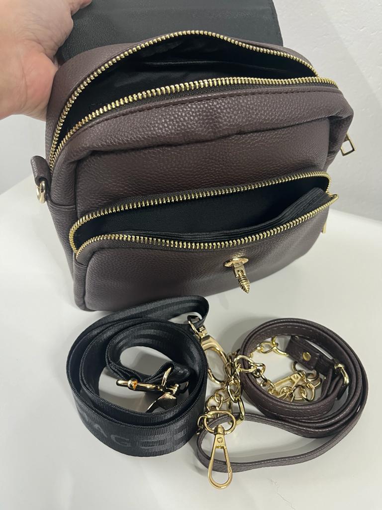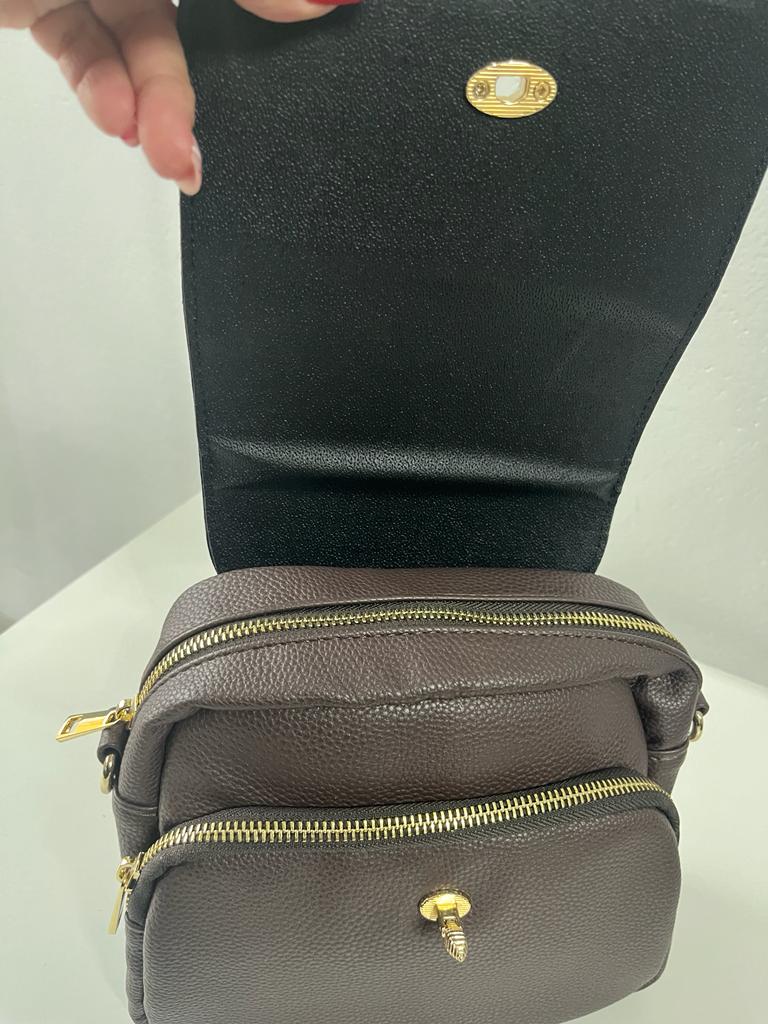 Dwie oddzielne przegrody zasuwane na suwak, przykryte klapką zapinaną ozdobną pszczółką.