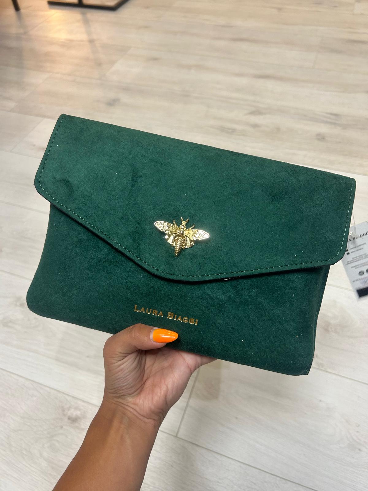 Torebka listonoszka Laura Biaggi z pszczółką zielony zamsz