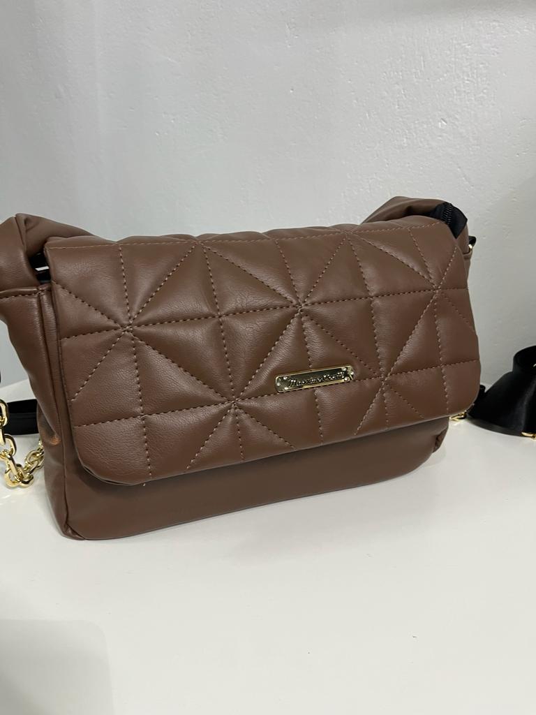 WYPRZEDAŻ Torebka pikowana Massimo Contti taupe z przekręconą rączką