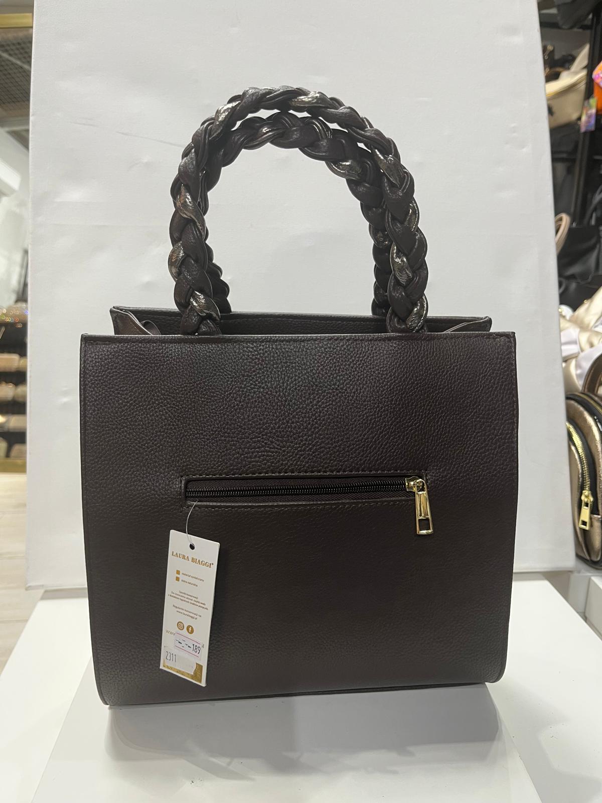Torebka shopper Laura Biaggi Czekolada KLASYCZNA TORBA Z PASKIEM NA RAMIE